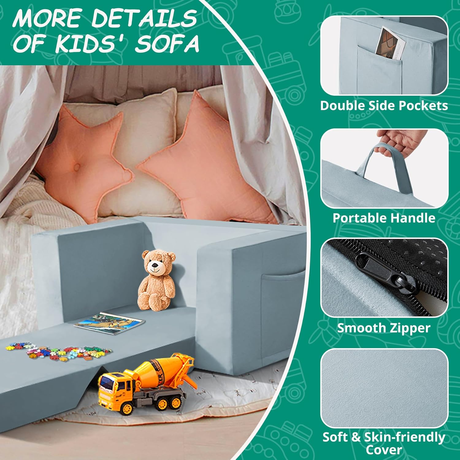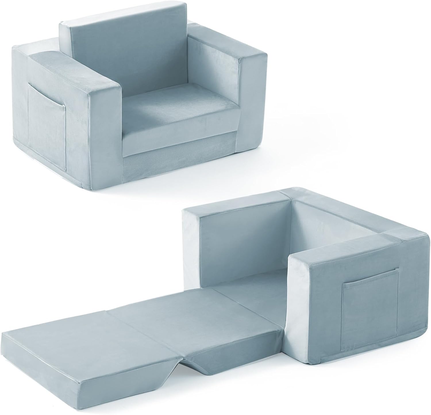 Kids Couch, 2-in-1 Toddler Chair Comfy 1-3 Years, Convertible Kids Chair, Toddler Couch That Fold Out, Kid Lounge Chairs for Boys and Girls, Soft Coral Fleece, Blue