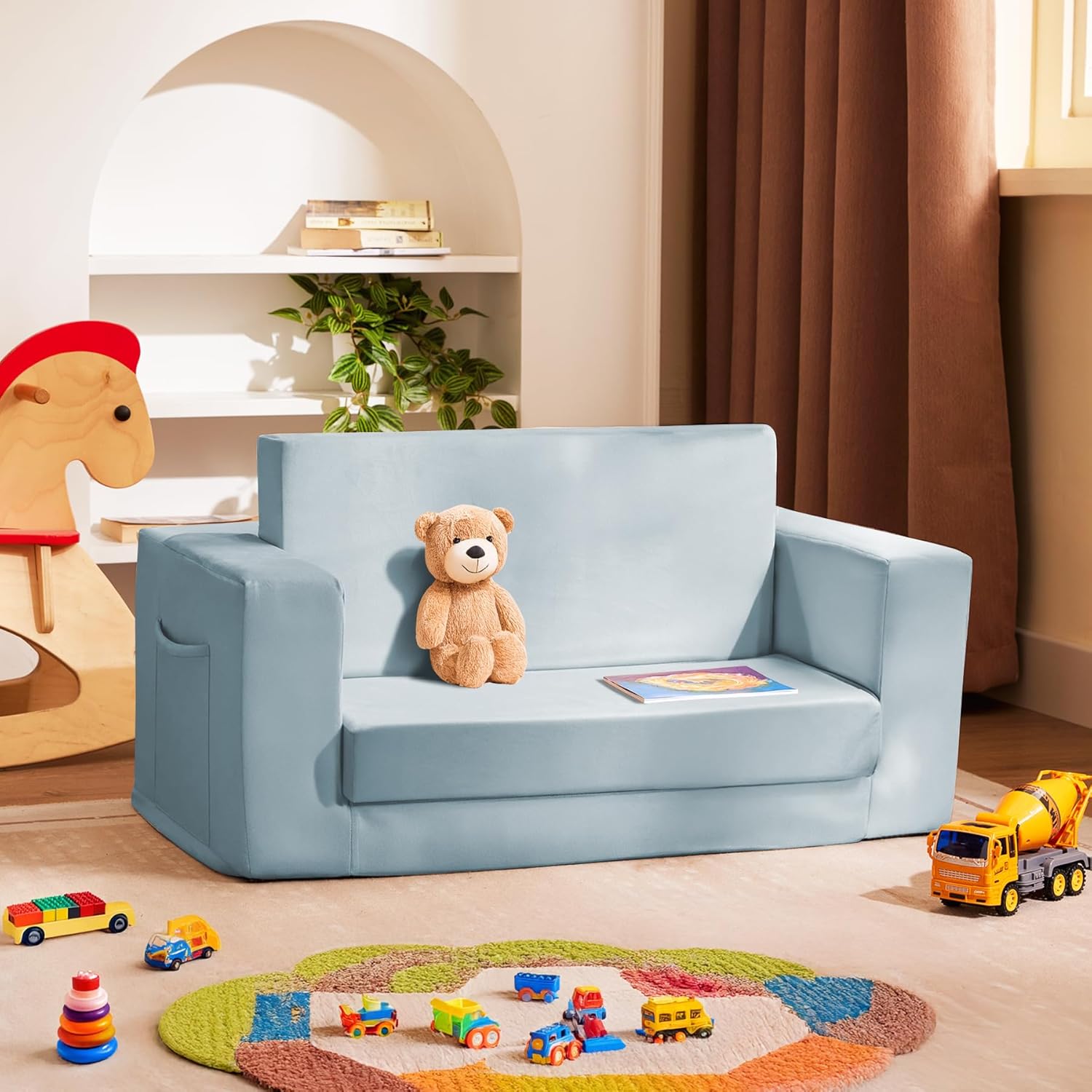 - Easy Care and Maintenance: This couch for kids is delivered unassembled for a convenient setup right out of the box. The slipcover is removable and machine-washable for easy cleaning.