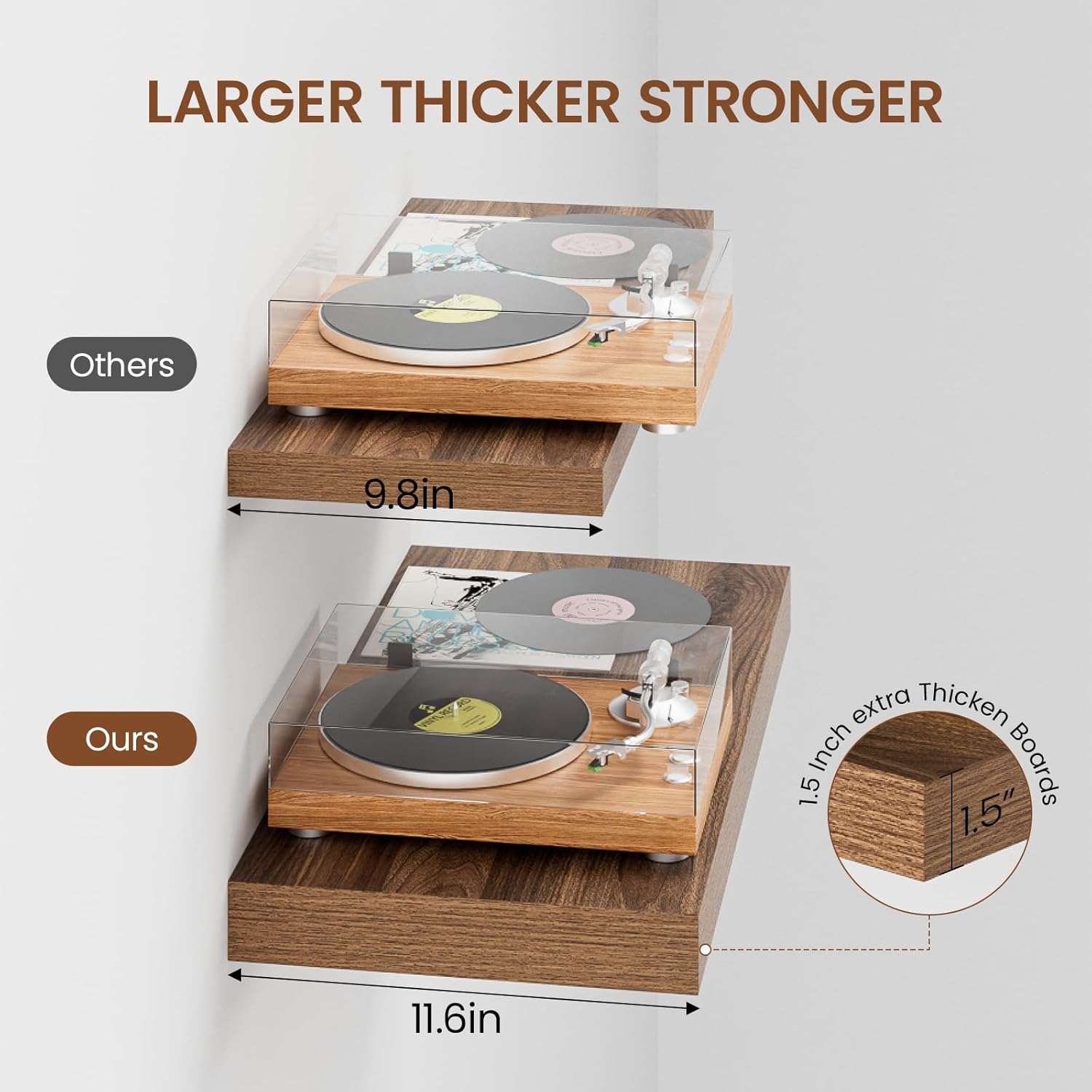 - Easy Installation: Comes with all the mounting hardware and detailed instructions, easy to install within 10 minutes. Thicken & strong metal brackets provide excellent support, keeping the floating shelves sturdy against the wall without sagging. The pre-drilled holes allow for secure attachment of boards to brackets, ensuring a reliable display.