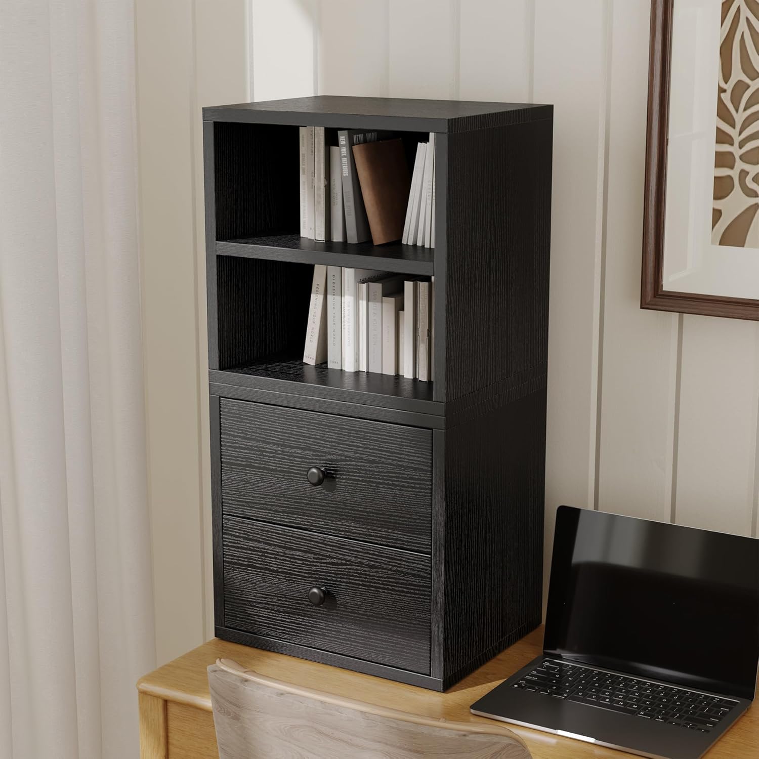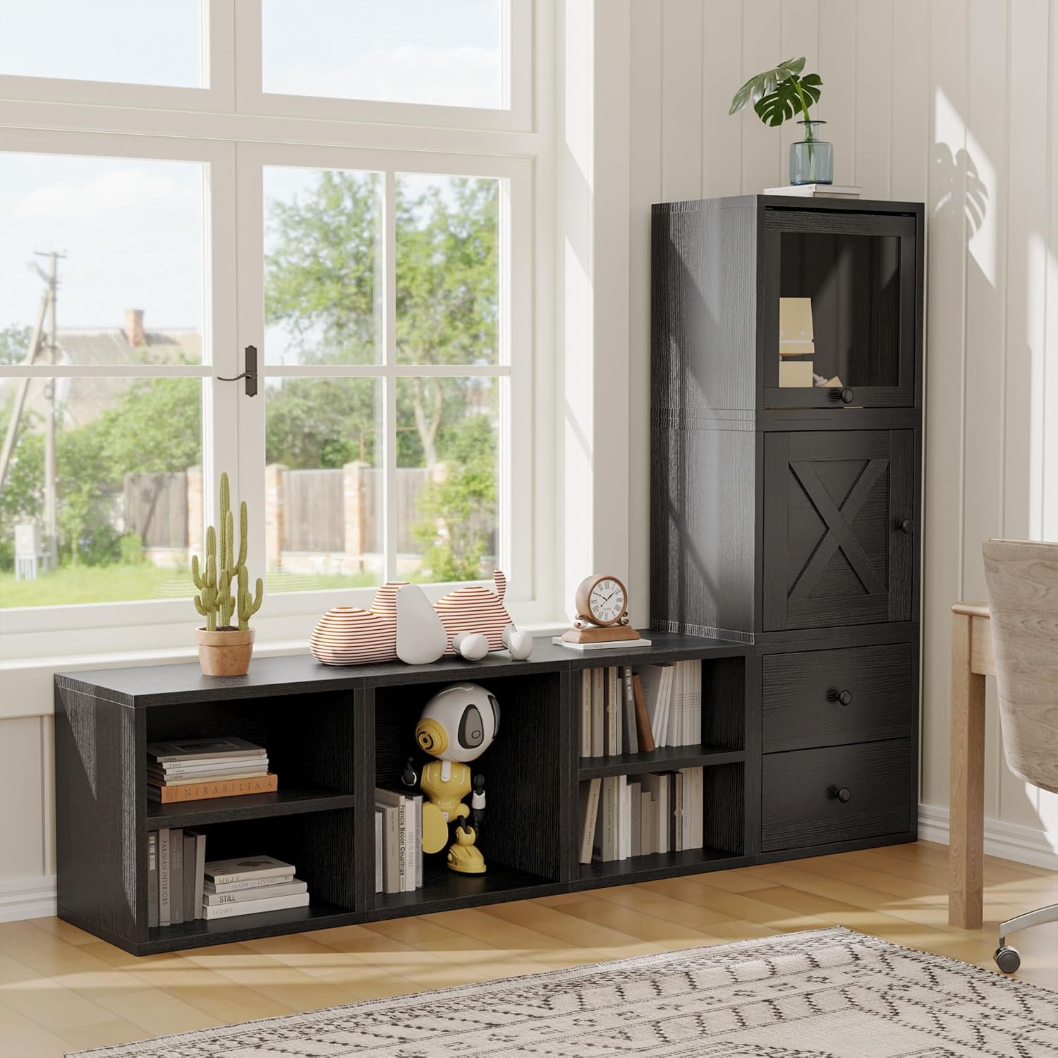 FUSUNBAO Magic DIY Cube Storage Organizer Stackable Cubes for Home Books Clothes Toy-Modular Cubby Storage System-Office Cubical-Bookcase Closet(Black,Cat Door Cube)