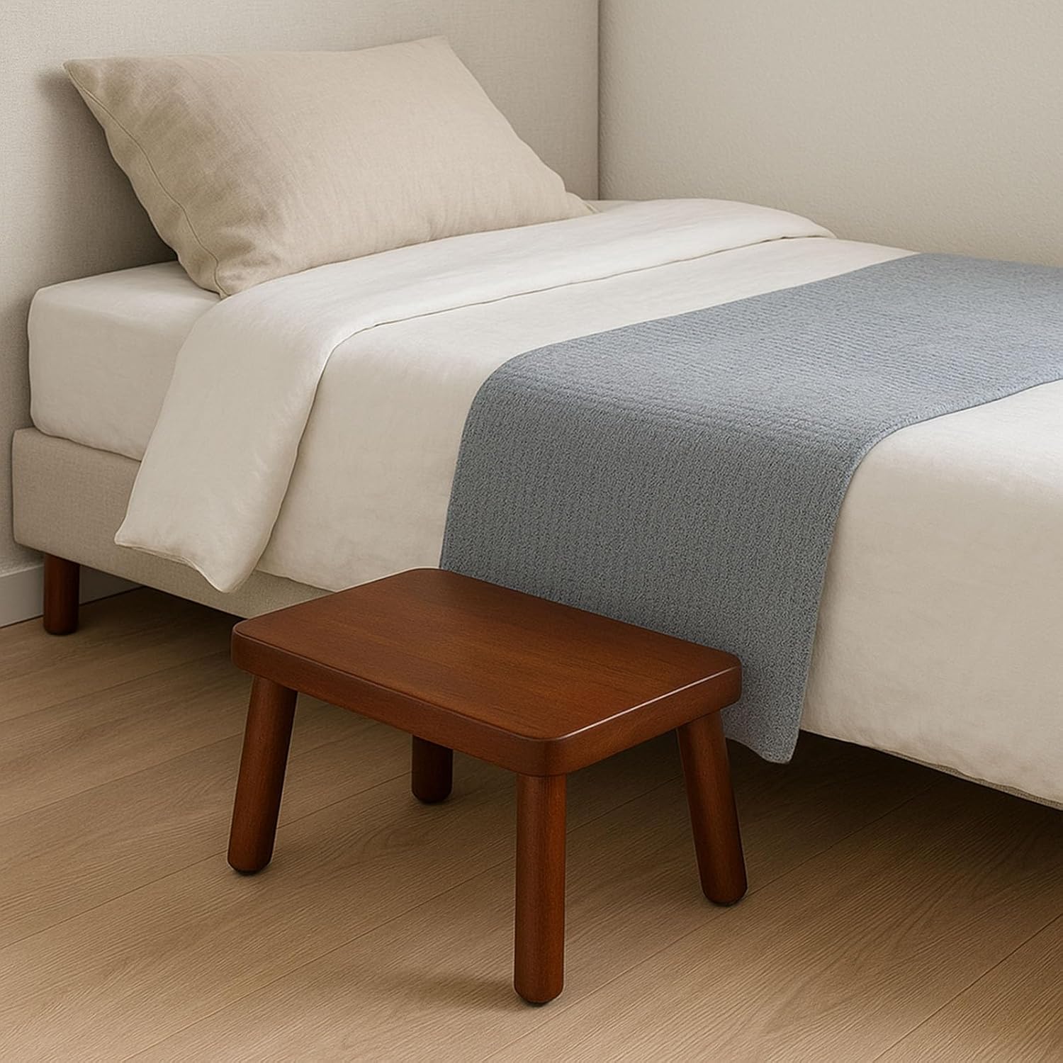 Wooden Step Stool, Foot Stool with Non-Slip Mat, One Step Stool, Small Stool for High Beds, Office, Bedroom, Bathroom (Brown, Small)