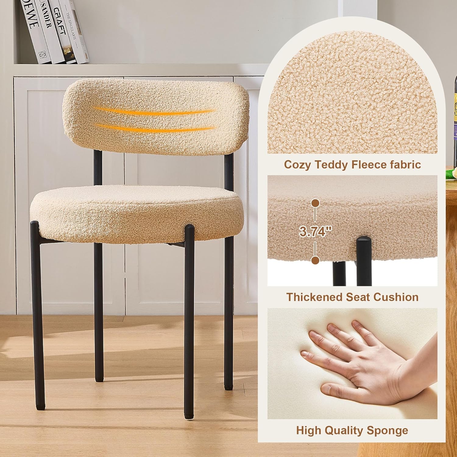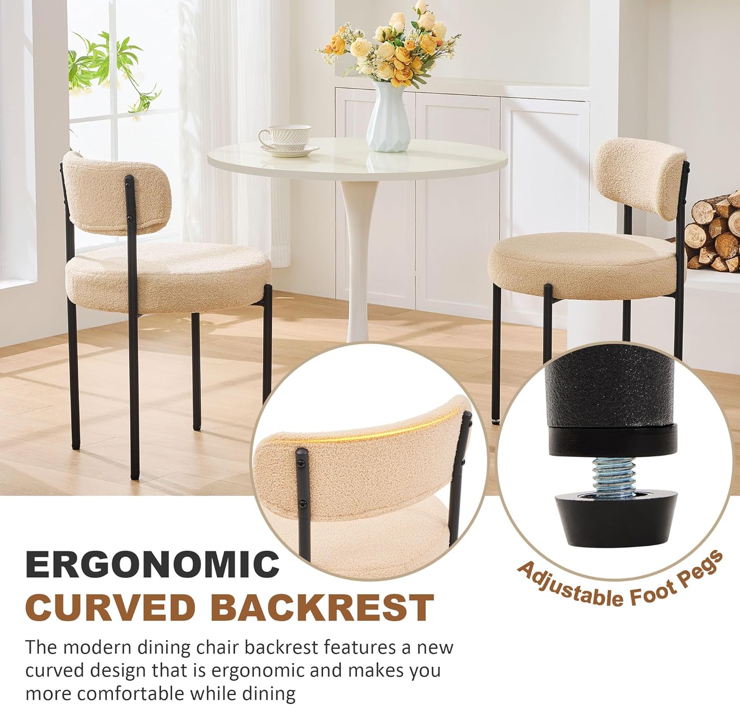 Dining Chairs Set of 6, Beige Boucle Dining Chair, Curved Backrest Upholstered Dining Room Chairs with Black Metal Legs, Mid Century Modern Dining Chairs for Kitchen, Living Room, Beige