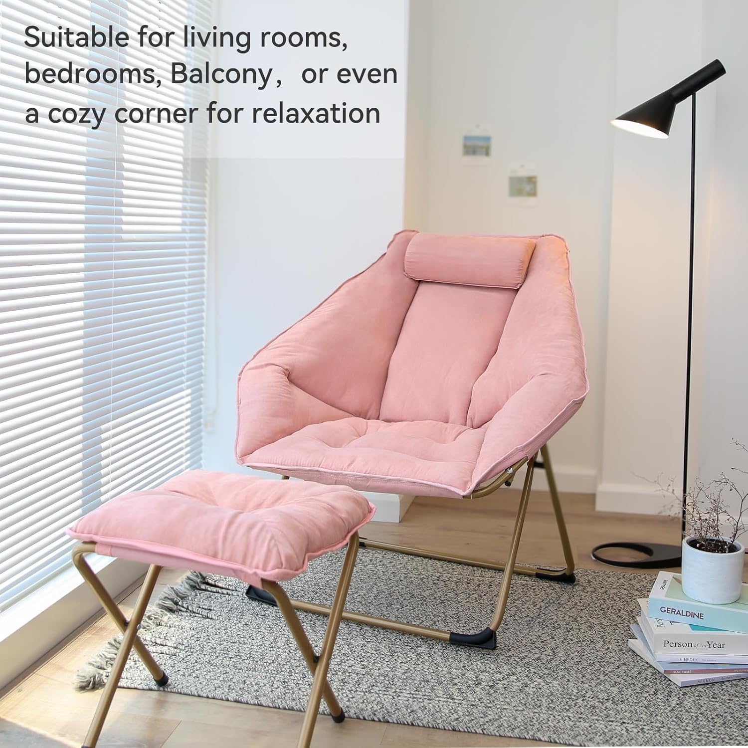 Hexagon Foldable Living Room Chair, Saucer Chair for Adults, Comfy Bedroom Lounge Chair, Moon Chair, Lazy Folding Chair for Dorm Rooms(Ottoman-Pink)