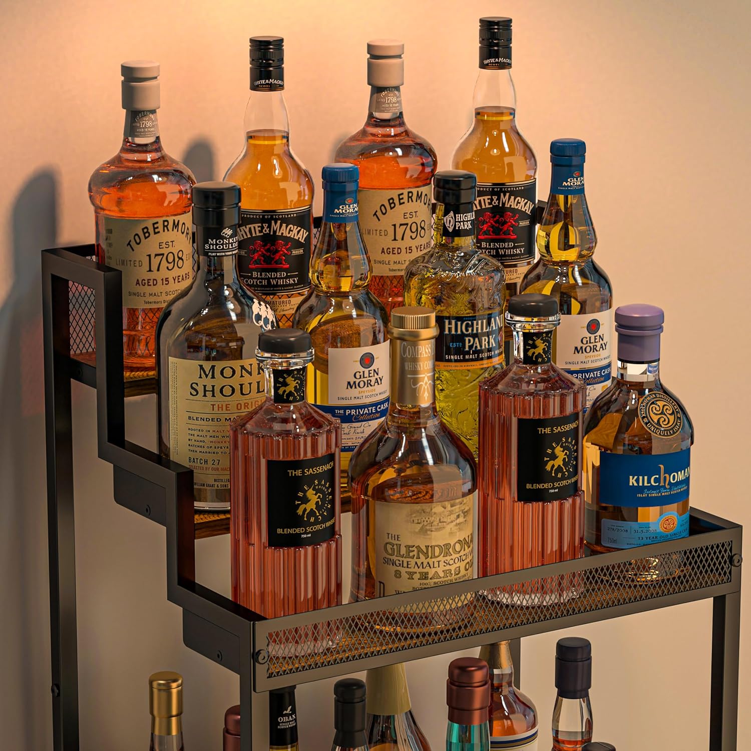 - 🍷Stylish and Functional Tiered Design: The stepped layout on top keeps every bottle visible and easy to access, making it easy to showcase your collection and grab what you need without hassle.