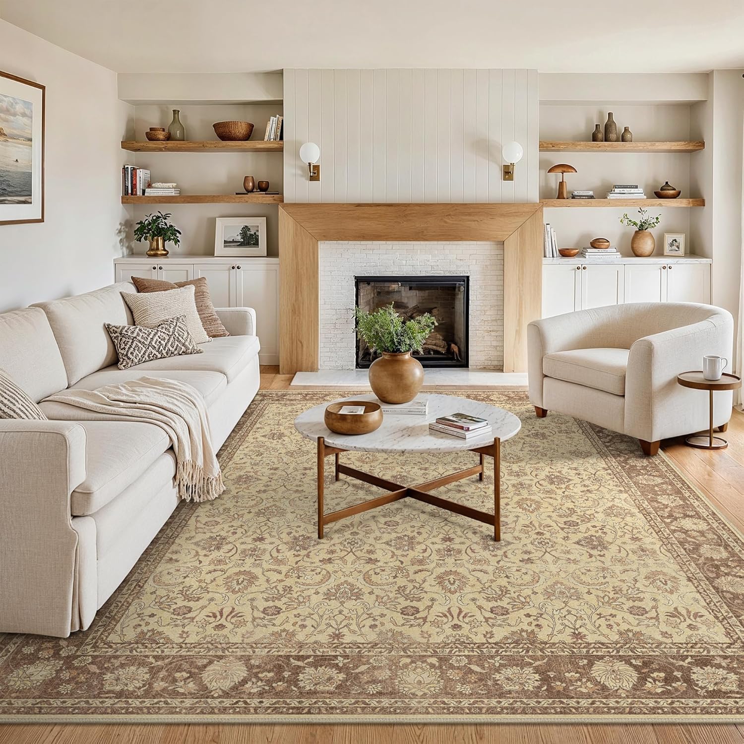 - Timeless Vintage Design:This light brown rug elegantly combines a timeless floral design with a muted color palette to infuse your living space with a touch of vintage charm. Its unique texture and patterns add a layer of sophistication and comfort to any room, making it a versatile addition to both modern and traditional decors.
