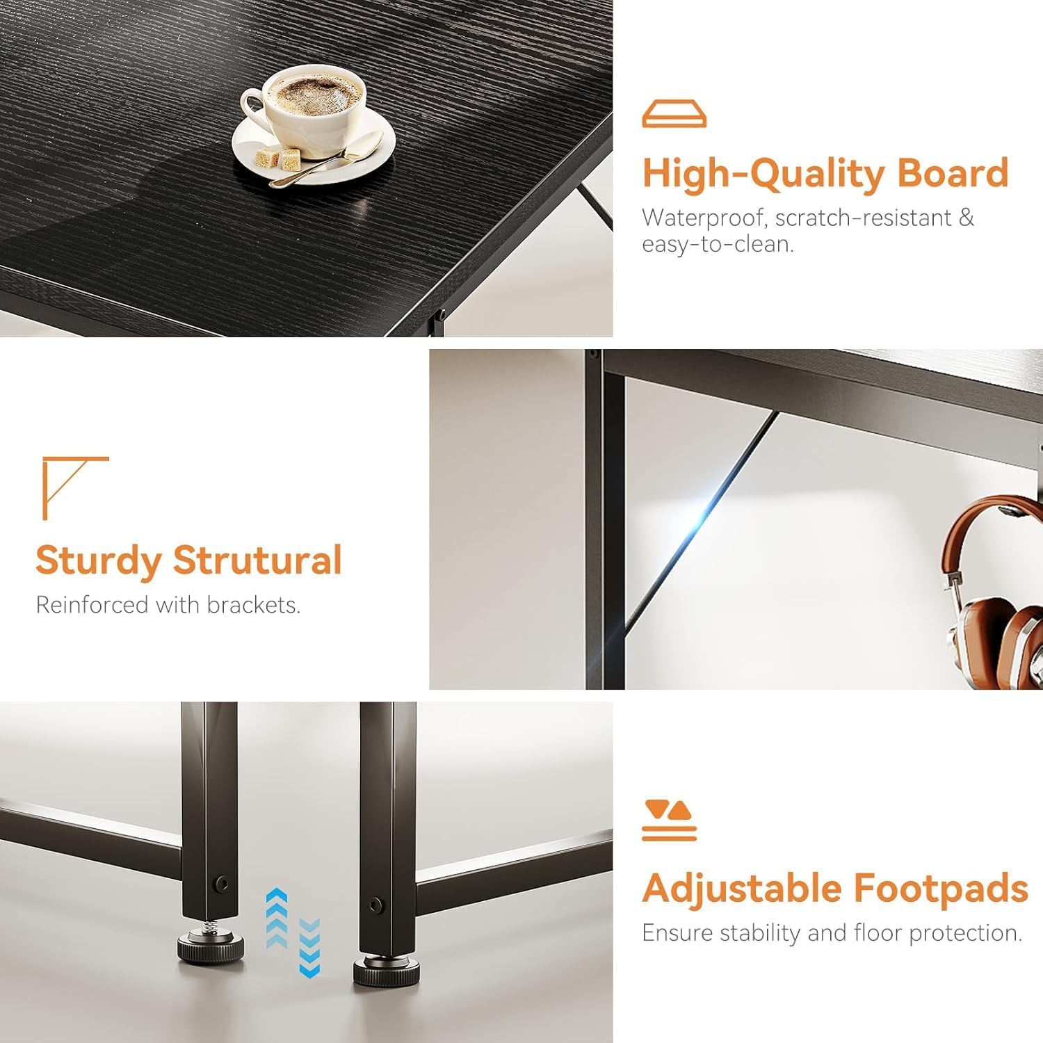 - Sturdy Structure: This writing desk measures 47.2" L x 18.9" W x 29.2"H and is built with a premium metal frame and high-quality MDF board for exceptional stability and long-lasting durability. The adjustable non-slip foot pads not only safeguard your floors from scratches but also provide reliable stability, even on uneven surfaces.