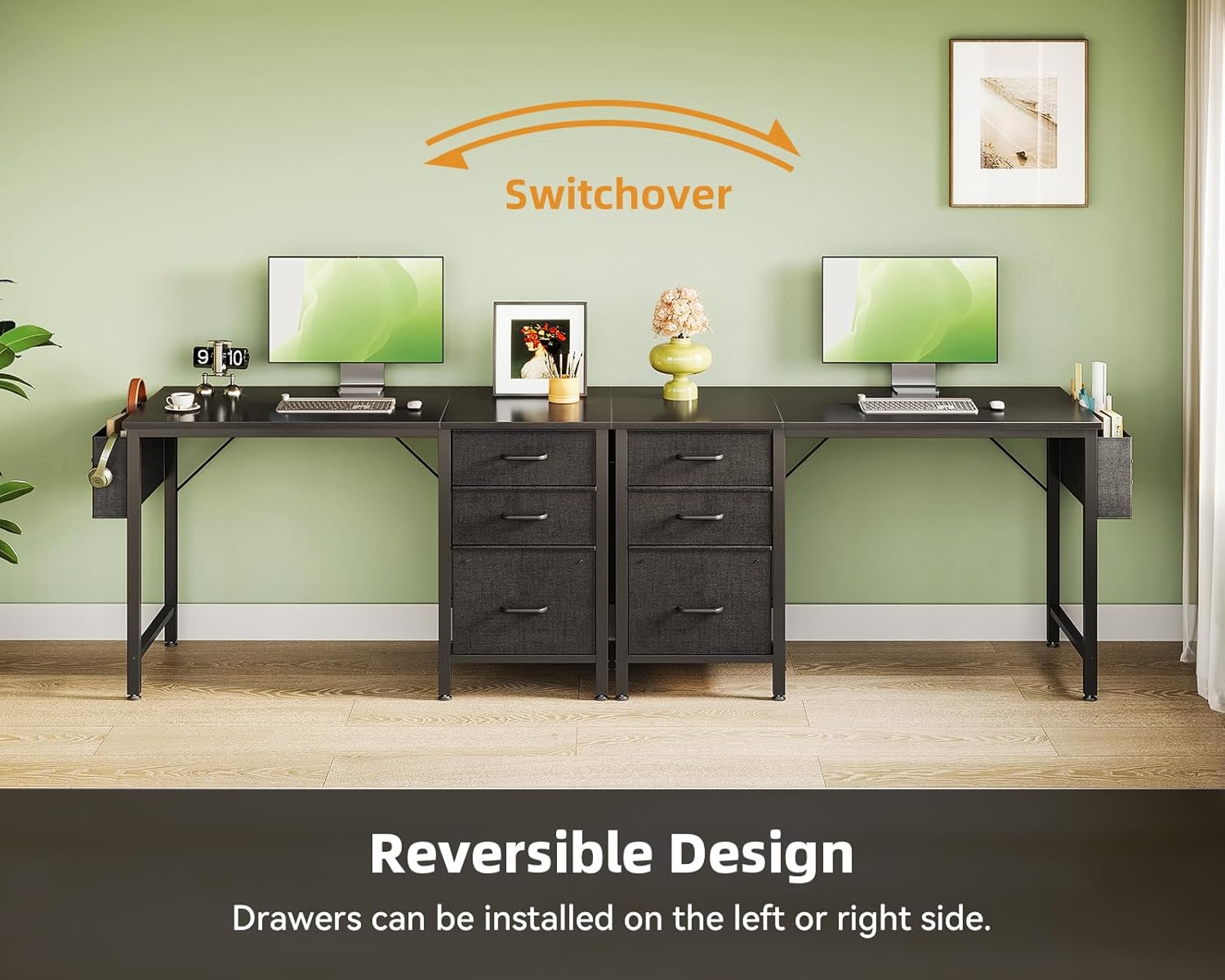 - Fabric File Cabinet and Fabric Drawers: This practical desk comes with 1 fabric file cabinet and 2 fabric drawers, providing versatile storage for letter, A4, or legal-sized files. The drawers are designed for easy cleaning, helping you keep office or study supplies organized and dust-free, while the spacious desktop ensures a clutter-free and productive workspace.