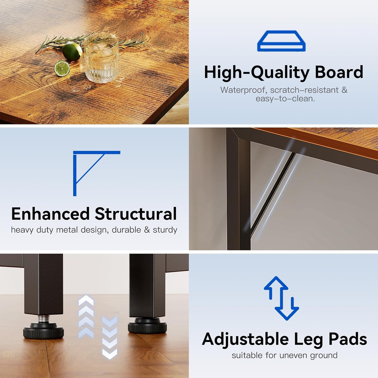 - Sturdy Structure: This writing desk measures 47.2" L x 18.9" W x 29.2"H and is built with a premium metal frame and high-quality MDF board for exceptional stability and long-lasting durability. The adjustable non-slip foot pads not only safeguard your floors from scratches but also provide reliable stability, even on uneven surfaces.