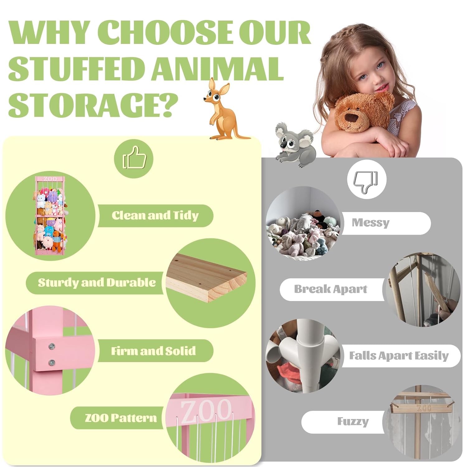 - Practical & Space Saving: This stuffed animal storage standing room comes with vertical design space saving, keep the stuffed animals stuffed pet plush, and stuffed animals off the floor, and reclaim your space. In addition to being the stuffed animal storage, the plush storage is also a pretty nursery decor for your girl or boy.