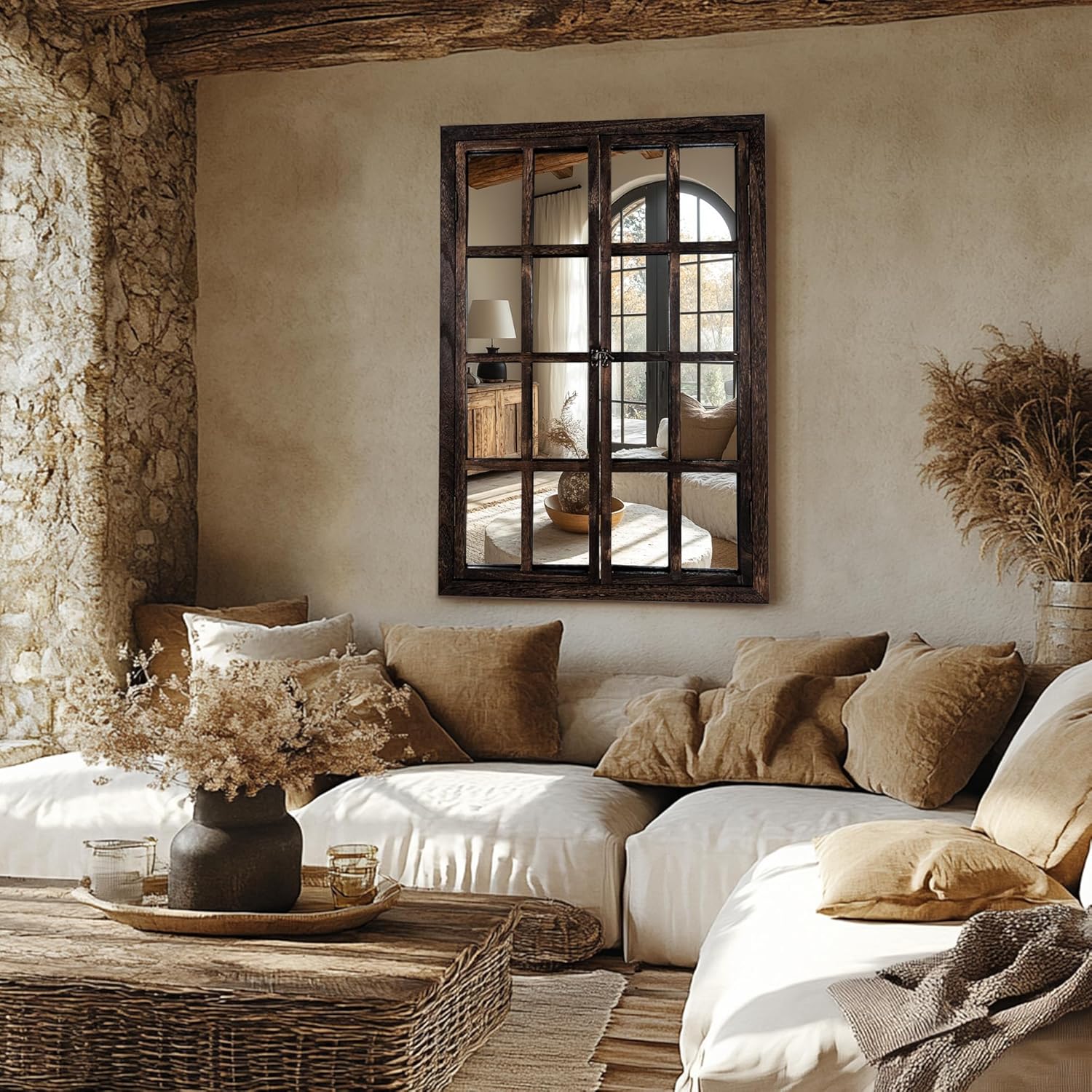 - 【Rustic Farmhouse Style】This wall mirror features a distressed wood windowpane design, adding a charming rustic farmhouse touch to any space. Perfect for those who love vintage-inspired or cottagecore aesthetics.