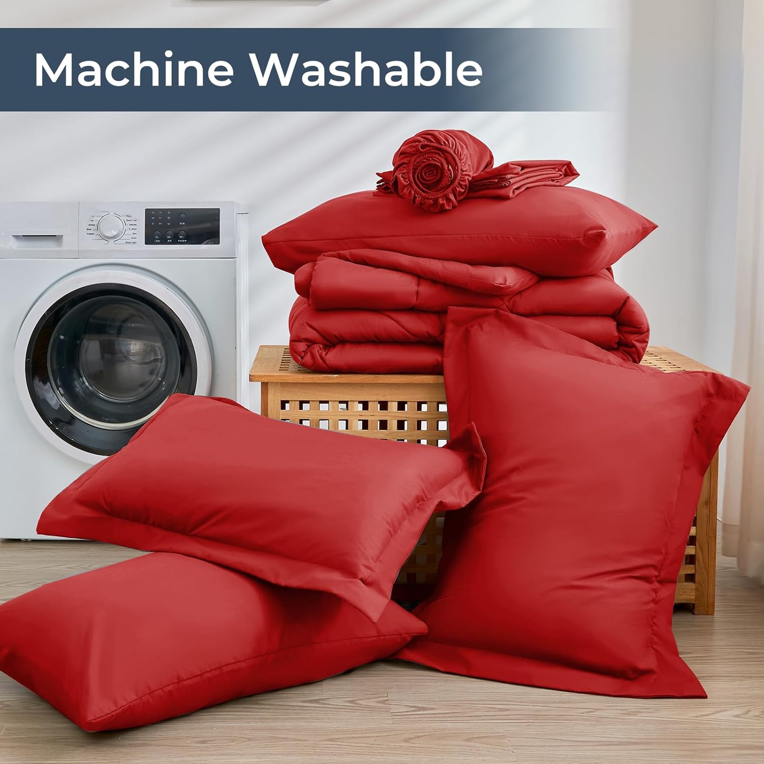 HEVUMYI Red Full Comforter Set - 7-Piece All Season Bed in a Bag Full, Ultra Soft Bedding Set with Comforter, Flat Sheet, Fitted Sheet, Pillowcases, Pillow Shams