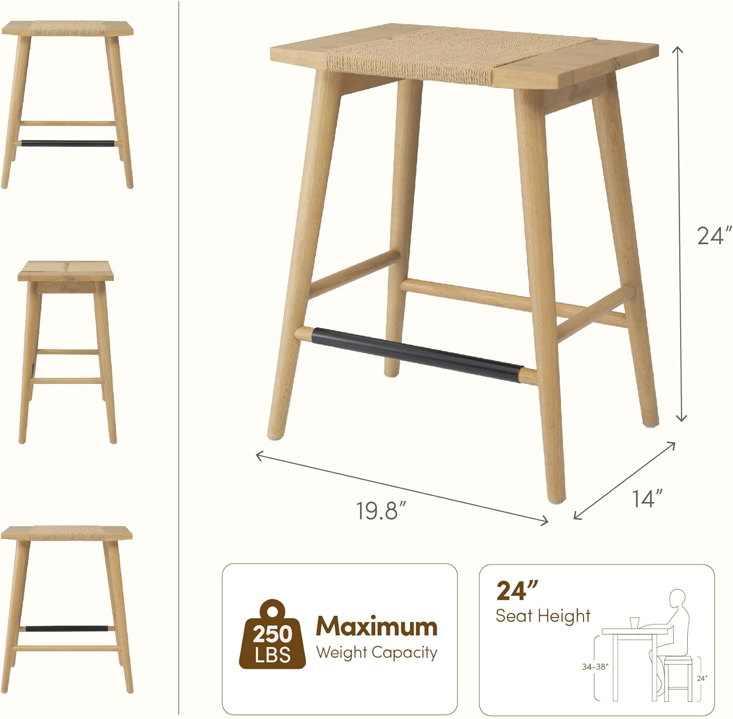 - 𝐒𝐓𝐔𝐑𝐃𝐘 𝐂𝐎𝐔𝐍𝐓𝐄𝐑 𝐒𝐓𝐎𝐎𝐋 𝐅𝐎𝐑 𝐄𝐕𝐄𝐑𝐘𝐃𝐀𝐘 𝐔𝐒𝐄: Built with a solid rubberwood frame and a comfortable 24" seat height, this counter stool is designed for durability in busy kitchens, home bars, or casual cafes. It provides reliable support and the perfect perch for countertops and kitchen islands.