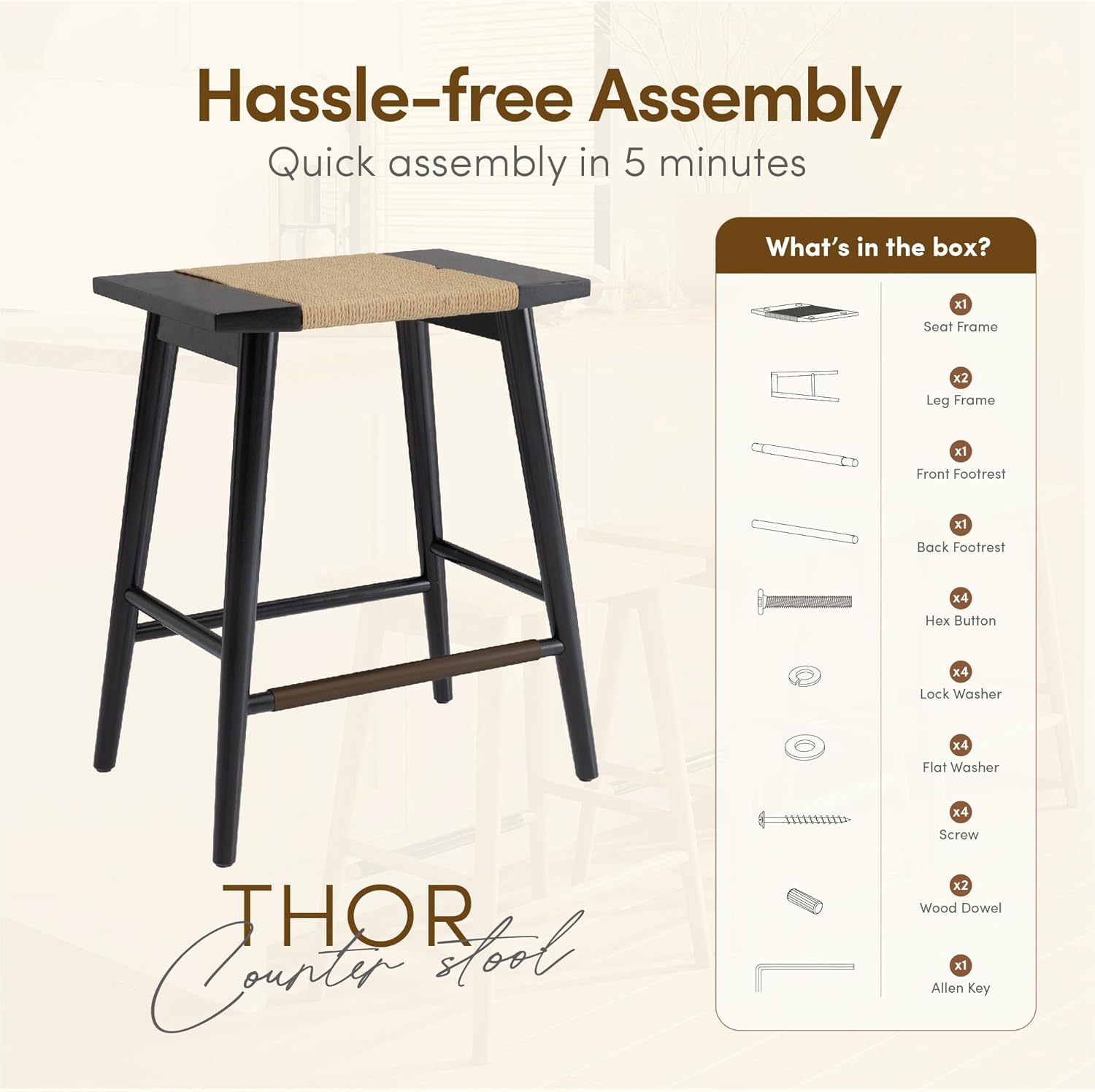 - 𝐒𝐔𝐒𝐓𝐀𝐈𝐍𝐀𝐁𝐋𝐄 𝐌𝐀𝐓𝐄𝐑𝐈𝐀𝐋: Crafted from solid rubberwood, the Thor Counter Stool combines sustainability and durability in a sleek, modern design. Sourced from responsibly managed forests, our FSC CW & COC certified wood ensures eco-friendly production without compromising strength. Built to last, this barstool offers exceptional sturdiness and timeless style, making it the perfect addition to any kitchen, bar, or café.