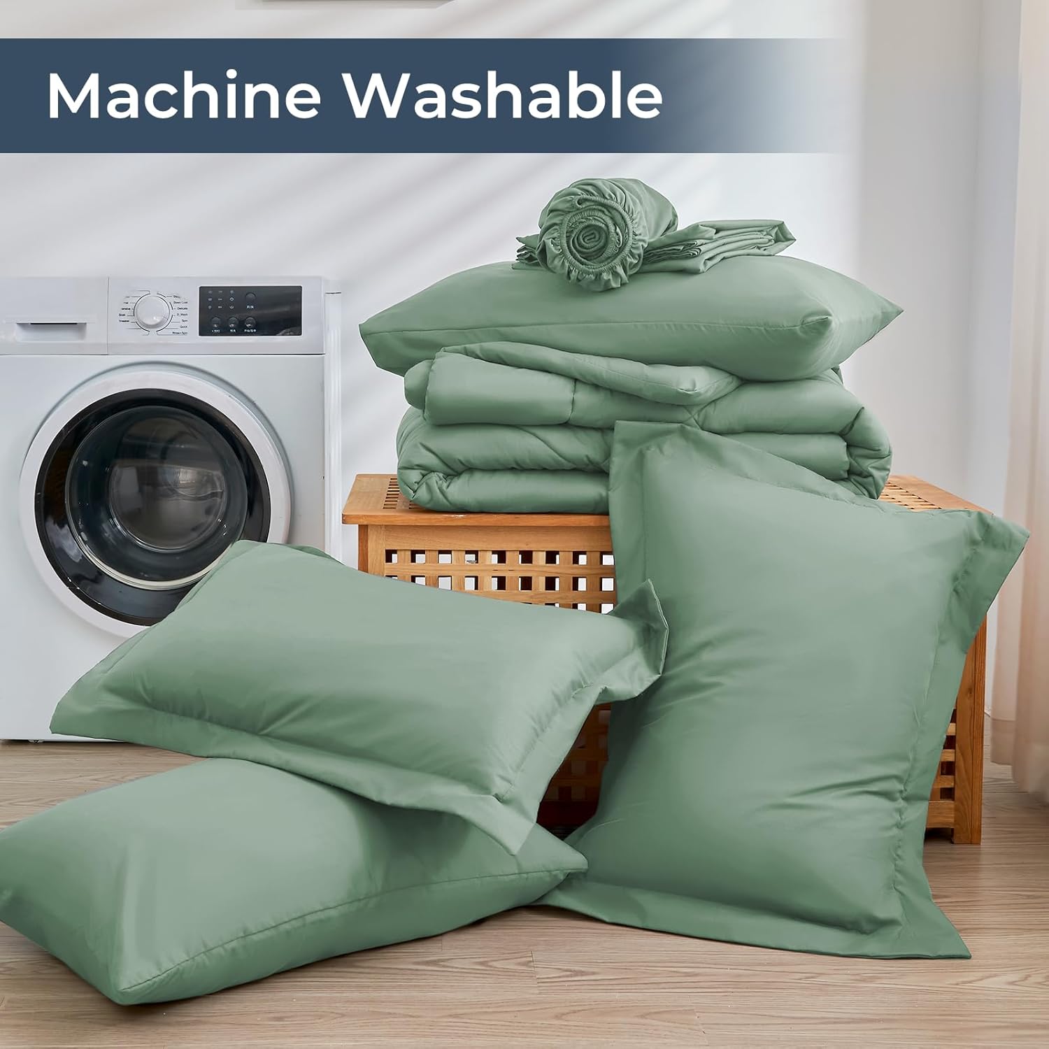 HEVUMYI Light Green King Comforter Set - 7-Piece All Season Bed in a Bag King, Ultra Soft Bedding Set with Comforter, Flat Sheet, Fitted Sheet, Pillowcases, Pillow Shams