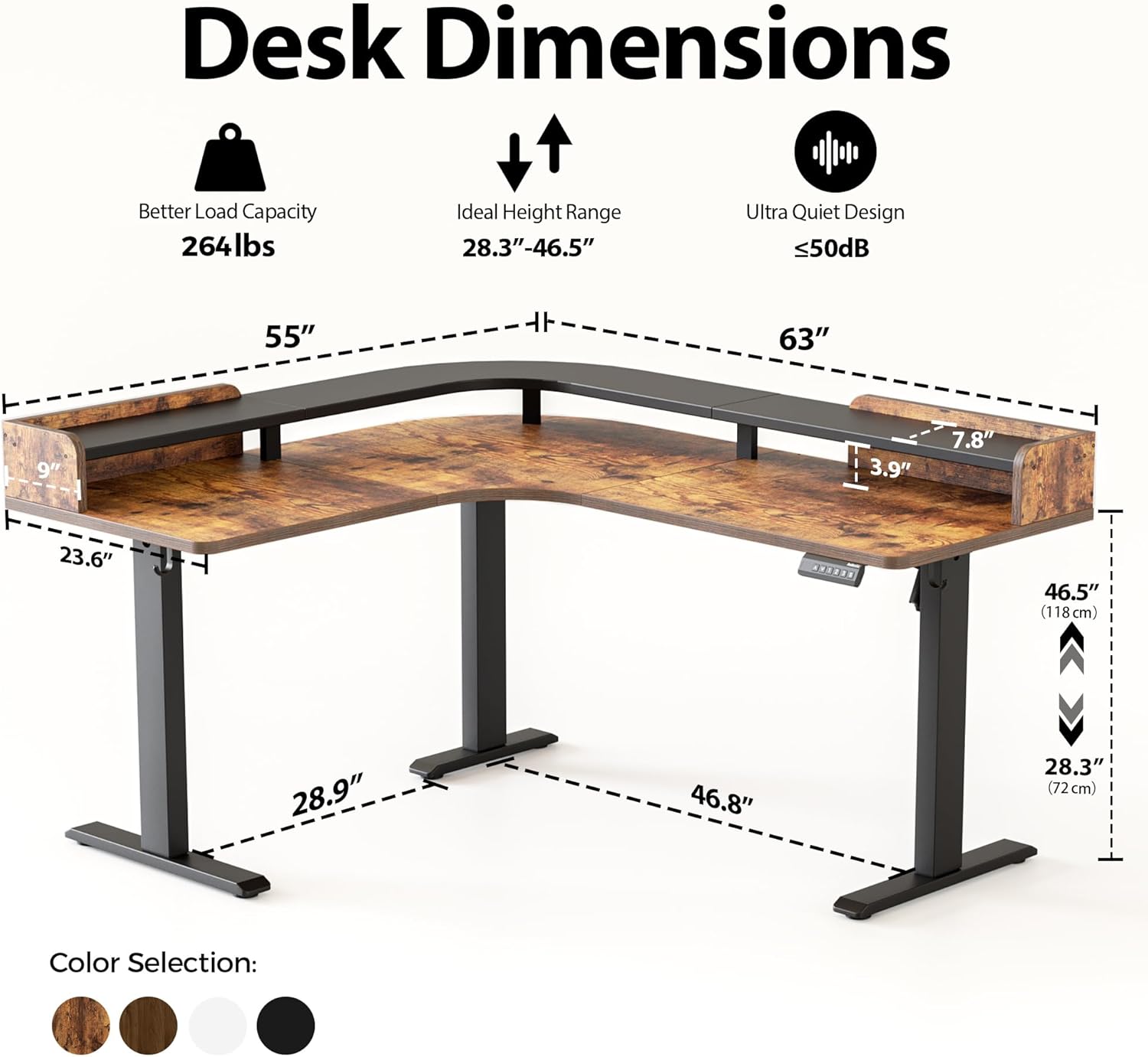 - ăIntelligent Adjustable Height ăEffortlessly switch between sitting and standing with 28.3"-46.5" height range. Customize your preferred height with 3 memory presets, perfect for home offices, gaming setups, or crafting studios.
