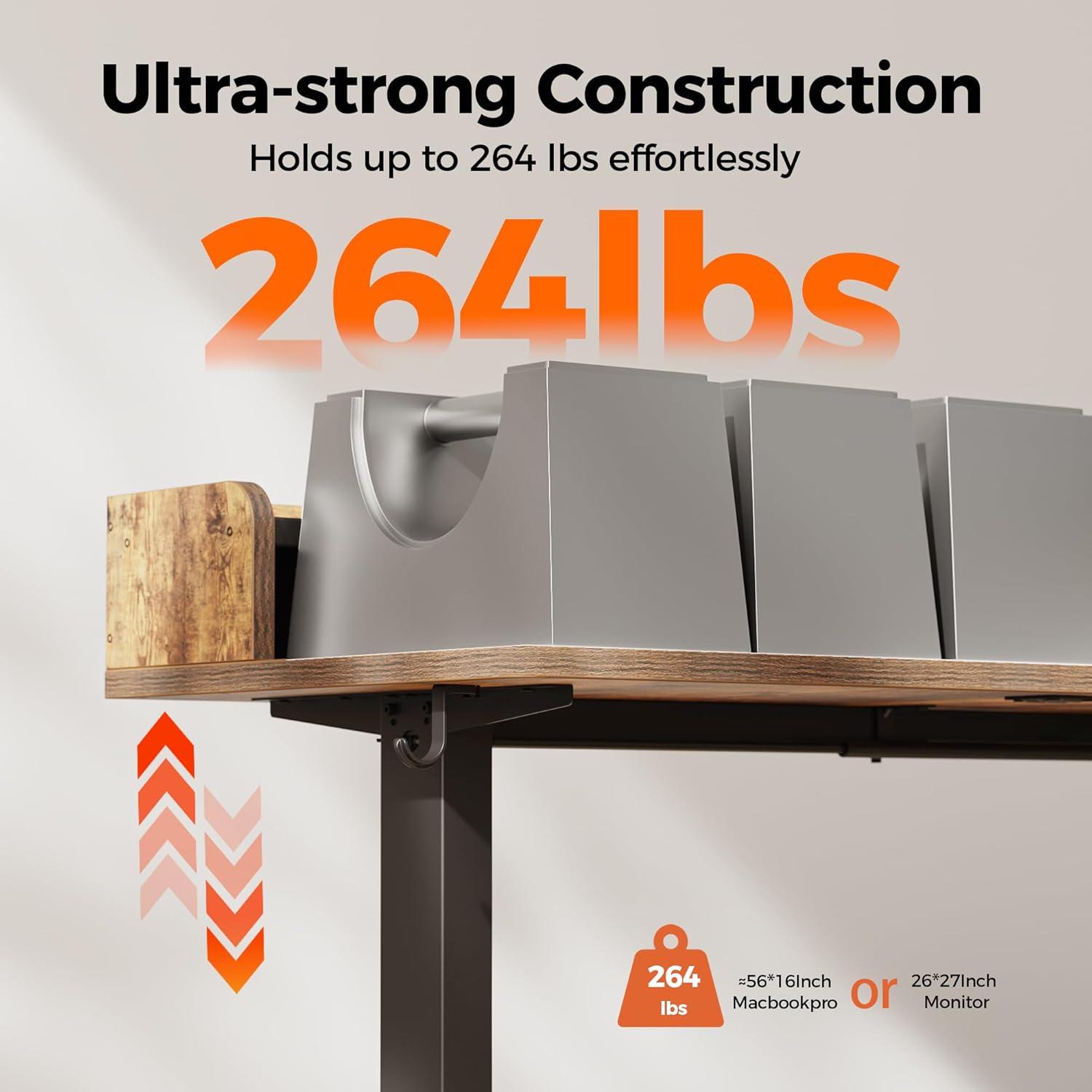 - ăSturdy DeskăBuilt with a robust steel frame, this standing desk bear up to 264 lbs load capacity. Providing reliable support for all your work essentials.