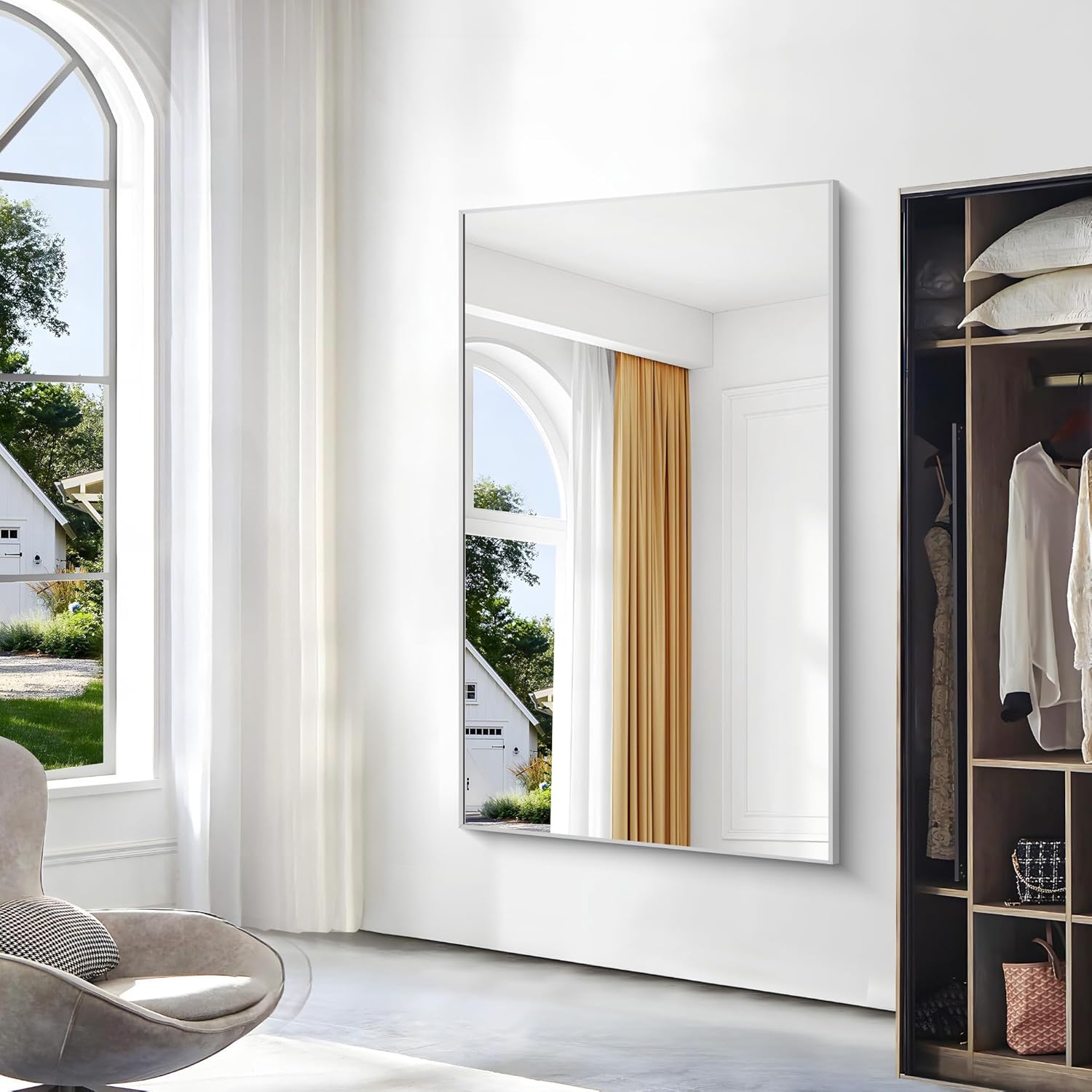 - CLEAR REFLECTION & NO DISTORTION : Silver bathroom mirrors for wall utilizes a four-layer floating technology to provide a high-definition reflection, presenting a clear visual effect without any distortion or bloating.