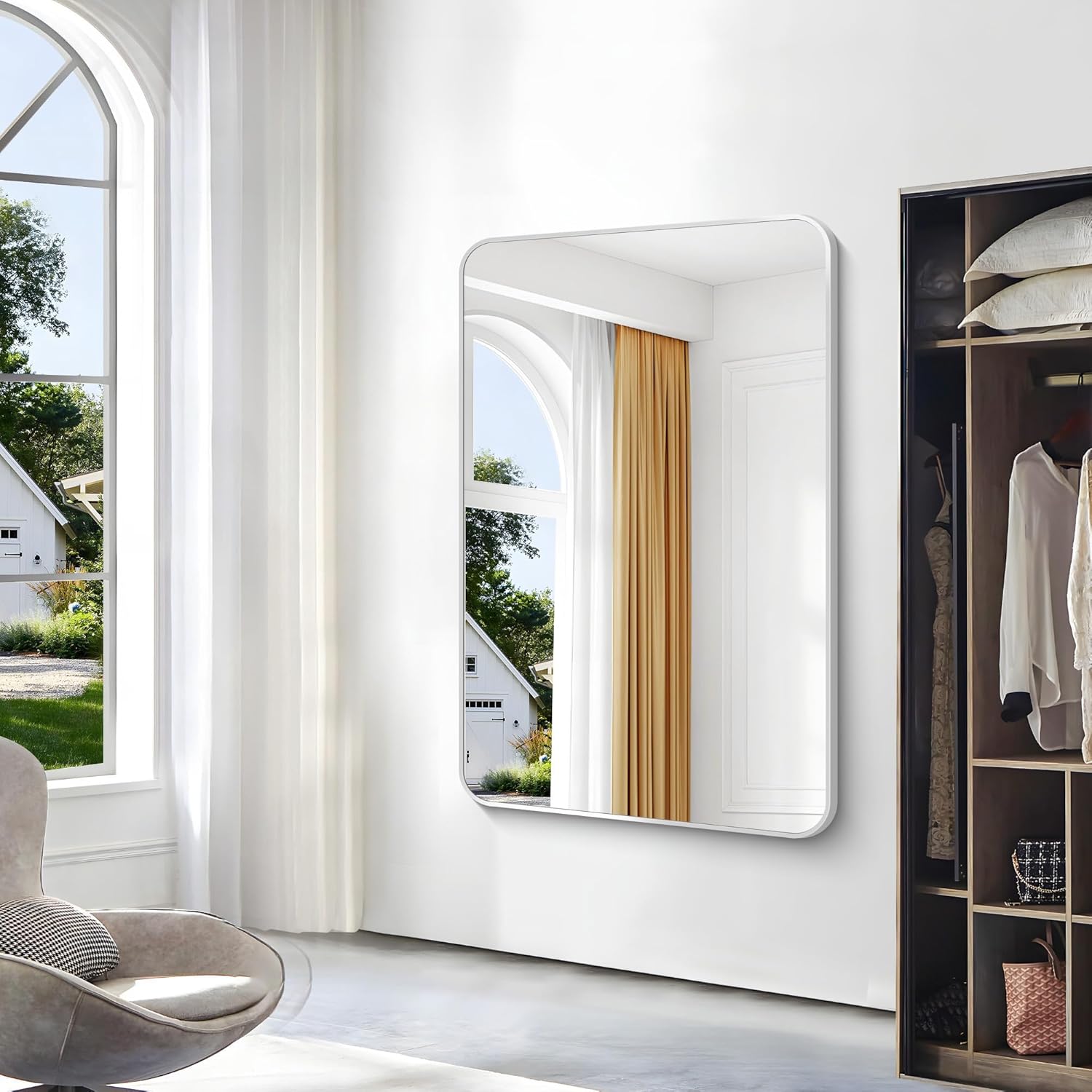 - ROUNDED CORNER DESIGN:The 55x36 inches mirror features an elegant rounded corner design and measures 55" x 36" Its unique shape adds a touch of sophistication and upscale beauty to your home.