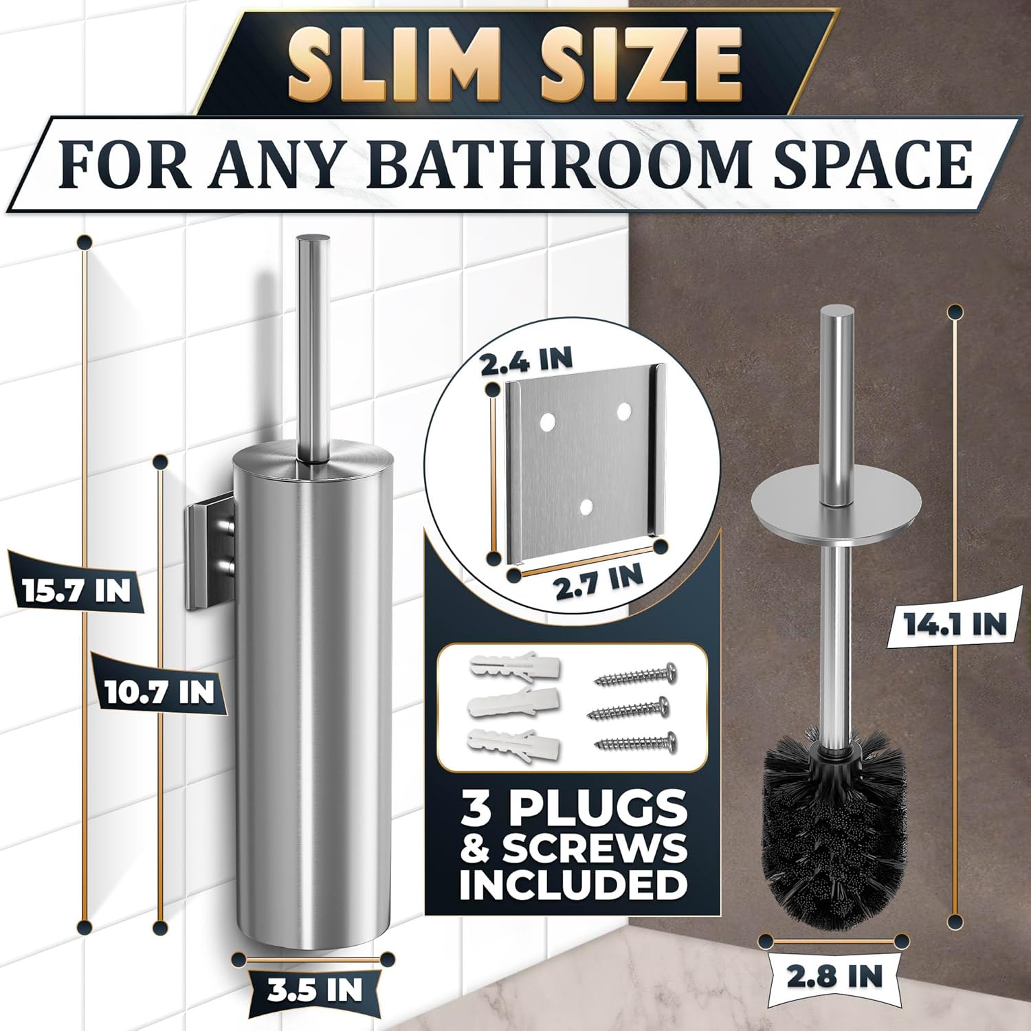 - Wall-Mount Holder: Ergonomic stainless steel toilet brush and holder set keeps your toilet bowl cleaning brush off the floor. Toilet bowl cleaners brush and holder offers discreet storage for small bathrooms