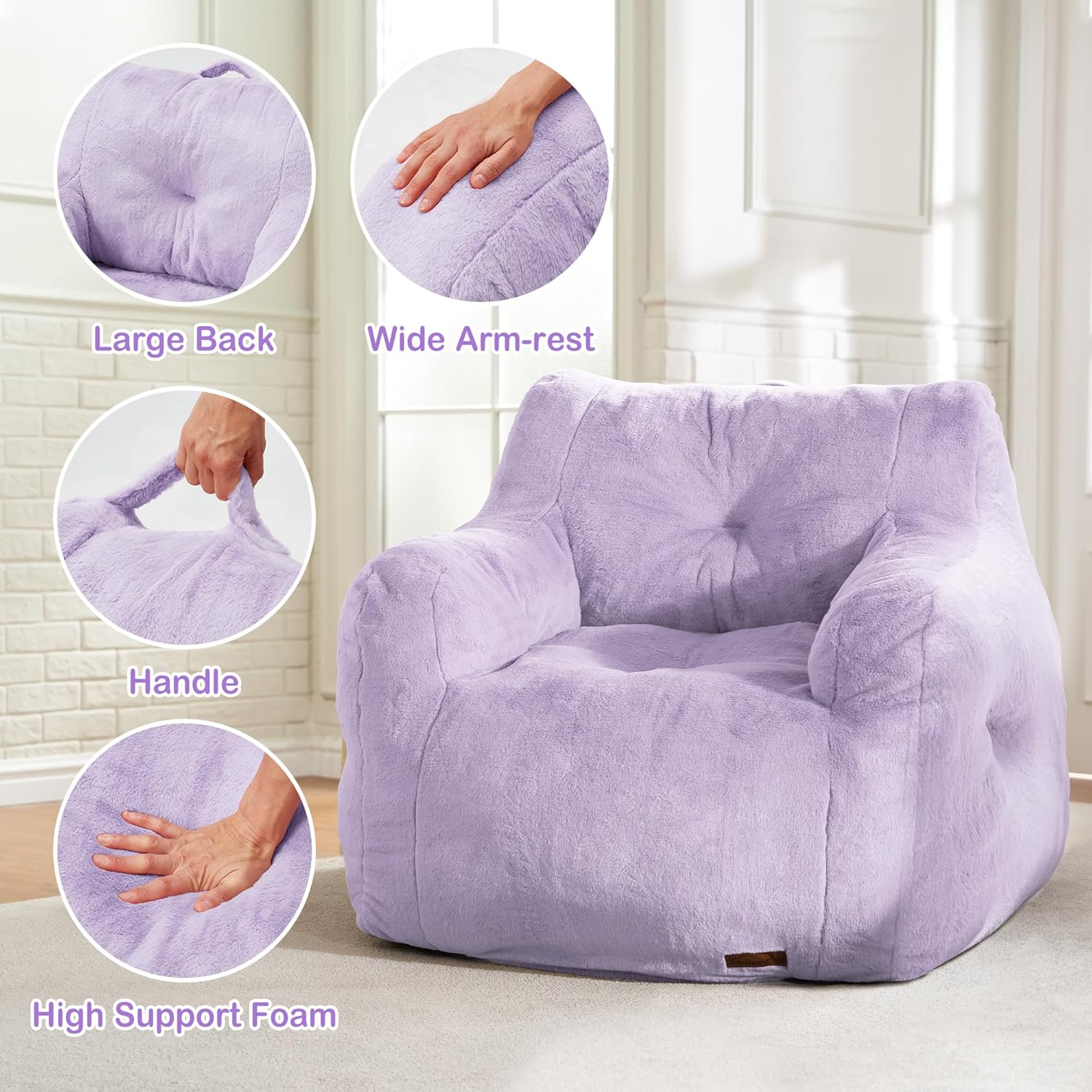 - Eco-Friendly Foam Sofa:Hobestluk bean bag sofas are made of high resilience, high density foam, which can provide enough support and an ultra-soft reclining experience. While the covers of the memory sofa chair are made of breathable and smooth faux fur fabric, giving you skin-friendly touching