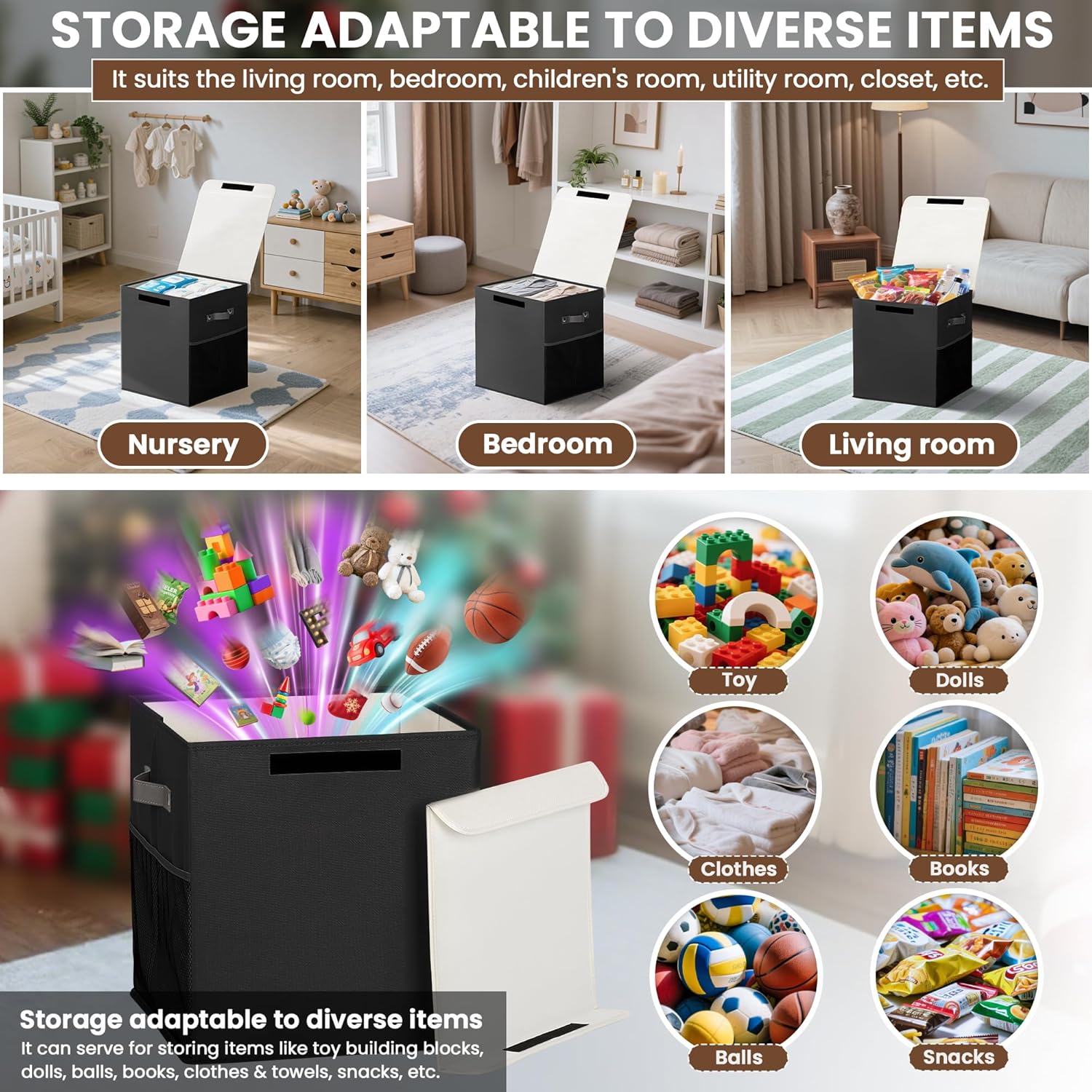 - Diverse Functions: ADEHMDA toy bin for kids can serve as a toy storage box, a clothing organizer, a book storage box, a snack storage container, etc., comprehensively meeting various storage needs.
