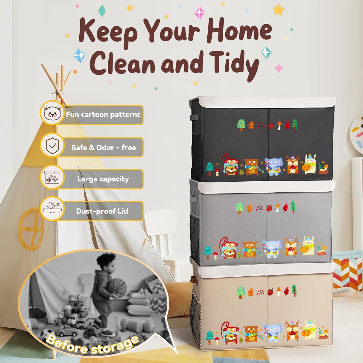 80L Large Toy Storage Box with Lid, Large Toy Box Chest for Kids, Girls and Boys, Nursery Room and Living Room, 26"x13" x16" (black-animal)