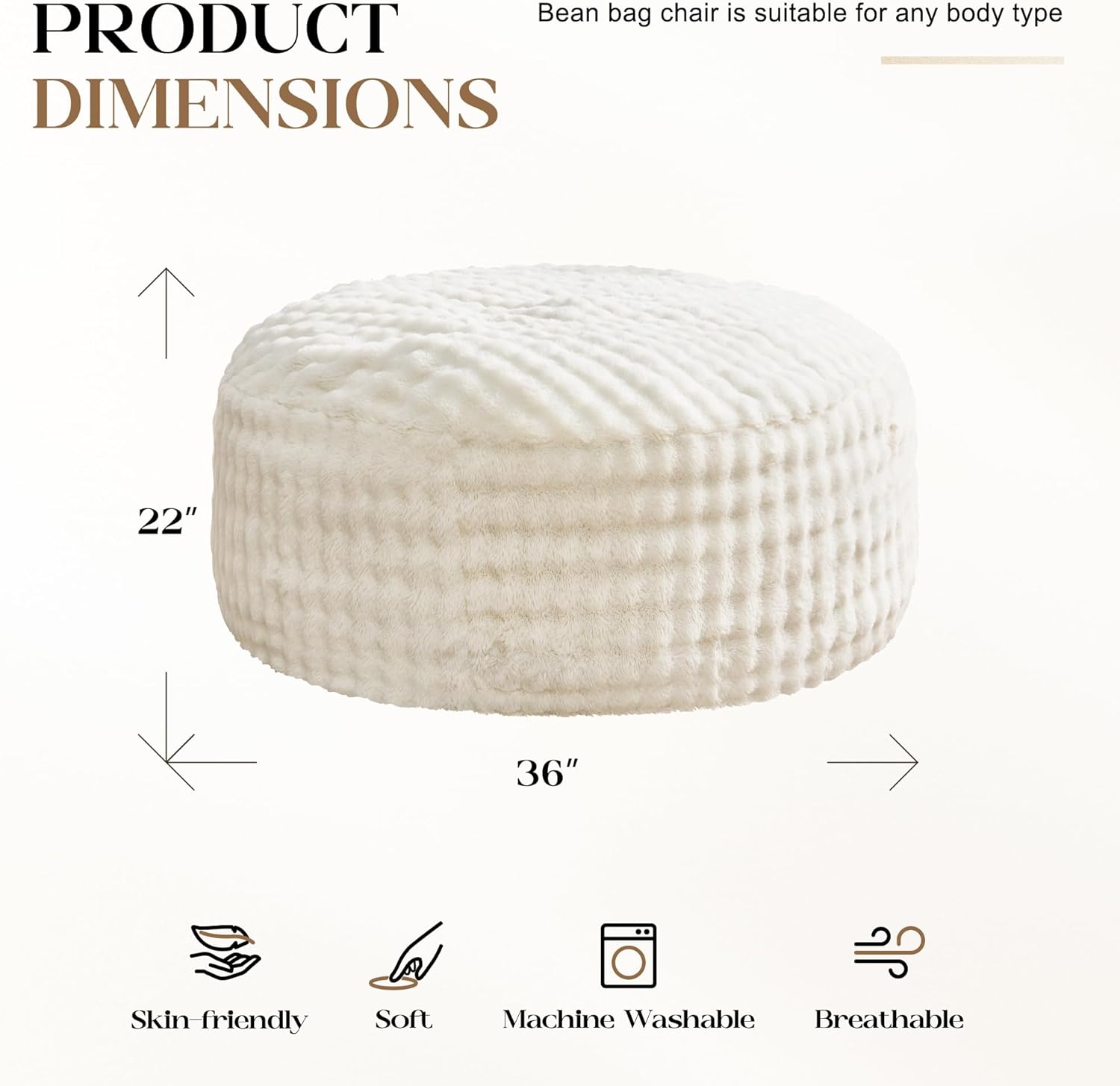 Hobestluk Bean Bag Chairs Beanbag Chair with Filler Adult Bean Bags with Fluffy & Machine Washable Cover, Giant Bean Bag Chairs for Adults (White, 3FT-36" x 36" x 22")