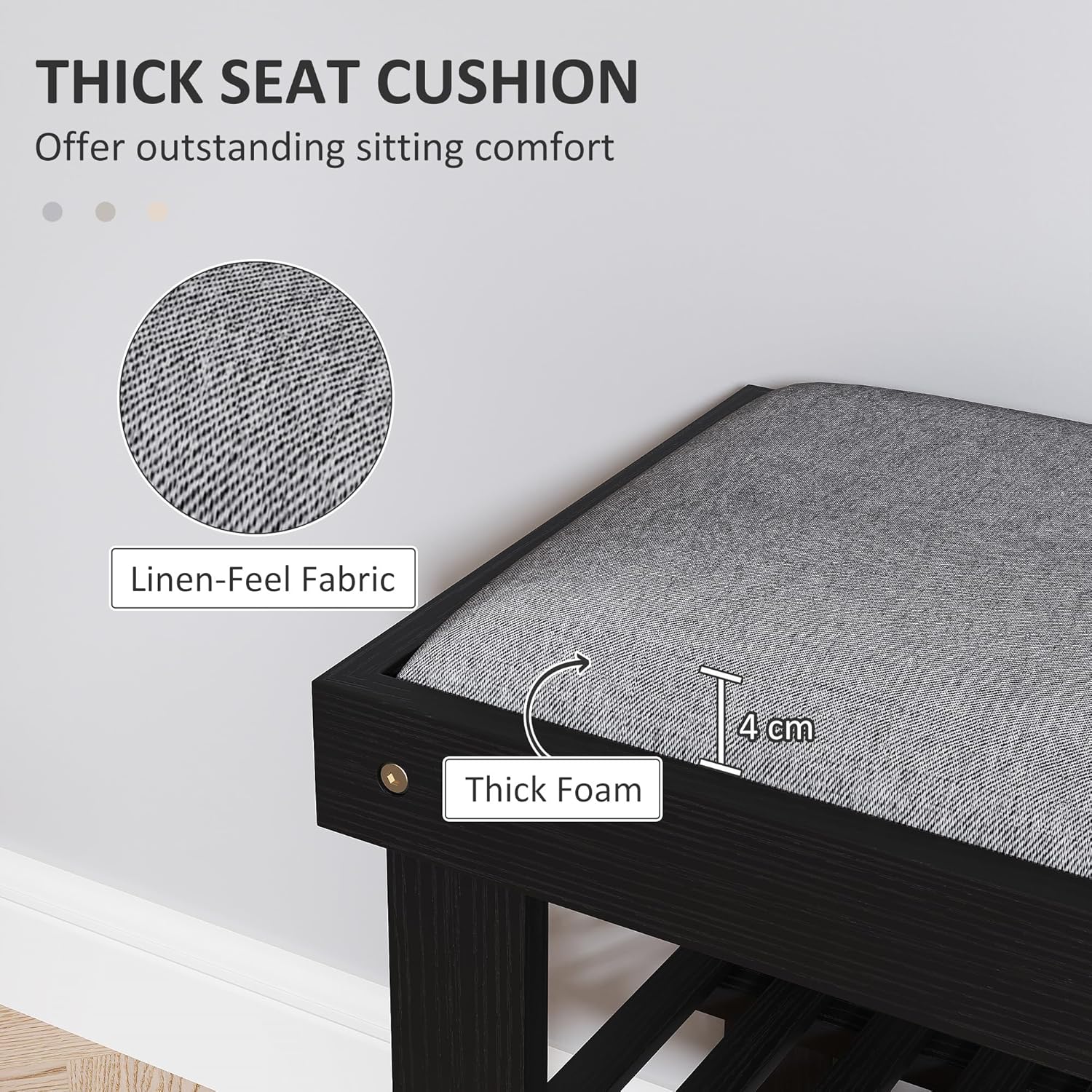 HOMCOM Bamboo Shoe Bench, 3-Tier Entryway Bench with Storage and Cushion, Shoe Organizer for Entryway, Hallway, Holds Up to 331 lbs, 23.6 x 11.4 x 19.3 Inches, Black