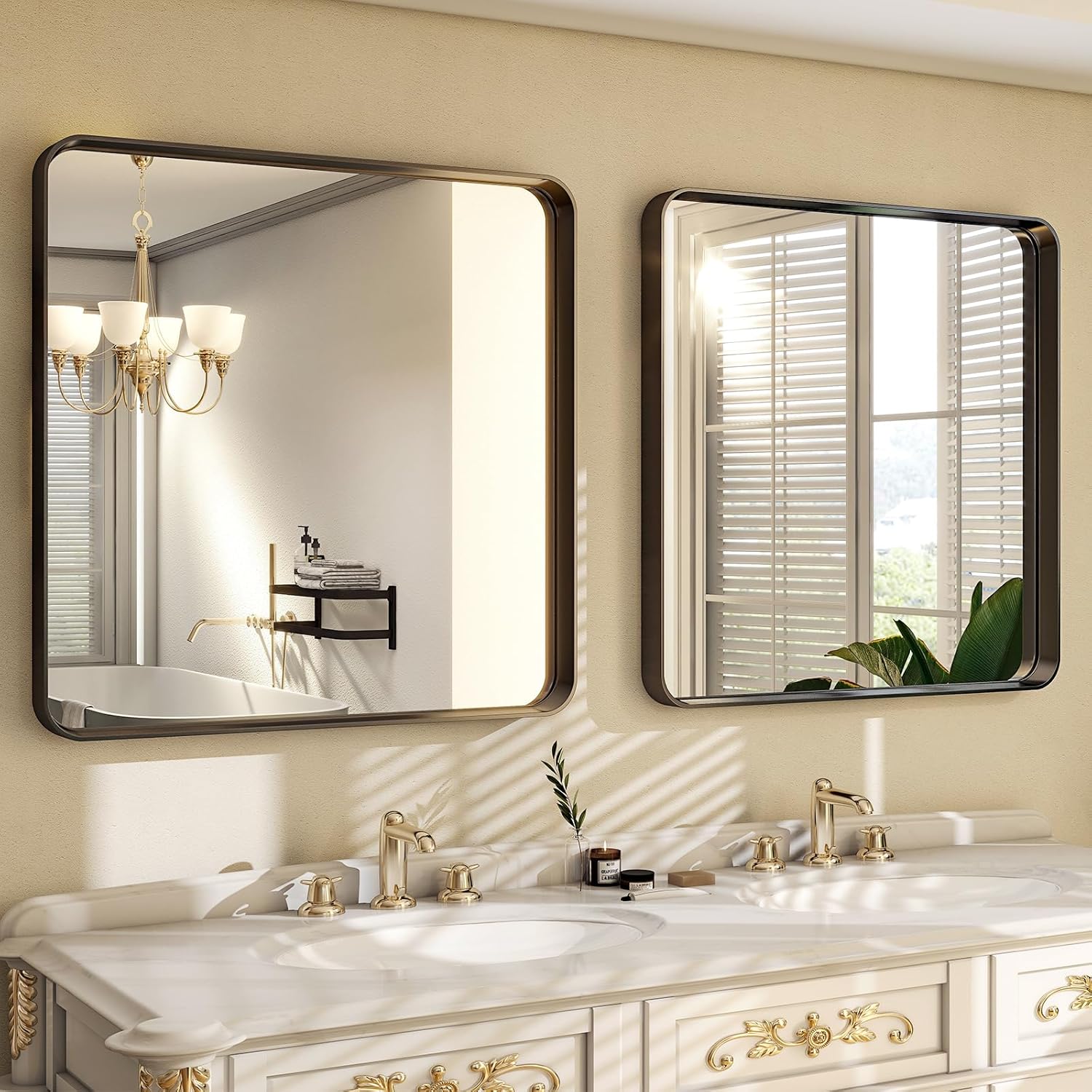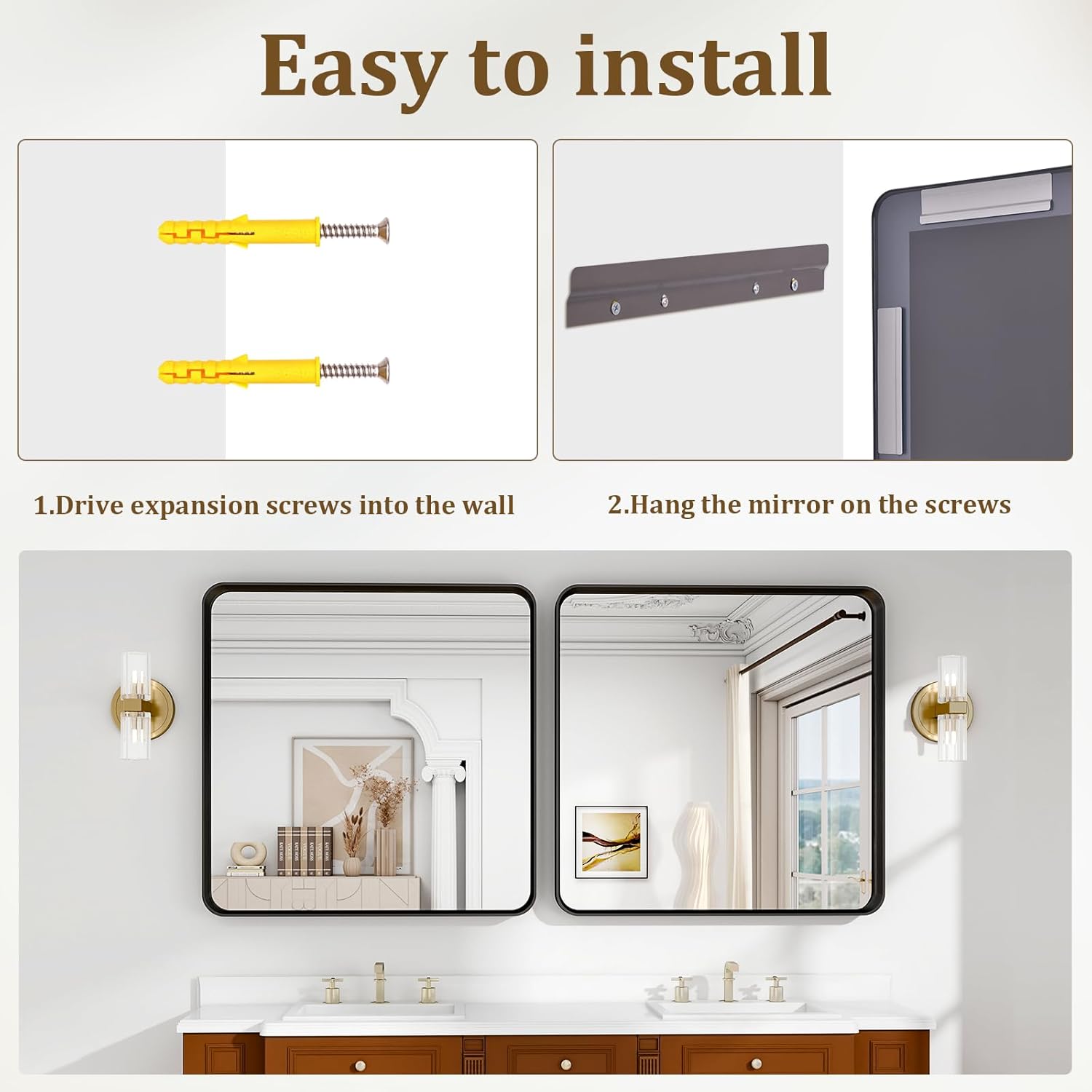 - Easy To Install: Includes instructions and all installation accessories, easy to install, can be finished in 10 minutes. Rectangular bathroom vanity mirror design and two sets of hooks allow you to hang horizontally or vertically