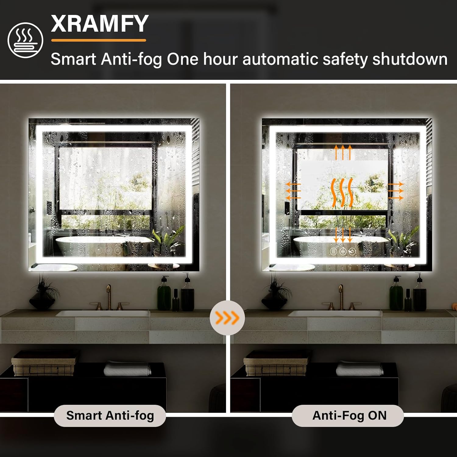 - Anti-Fog Function for Crystal-Clear Vision : Equipped with an advanced anti-fog function, this vanity mirror ensures a clear reflection even after a hot shower, making it perfect for bathrooms and high-humidity environments