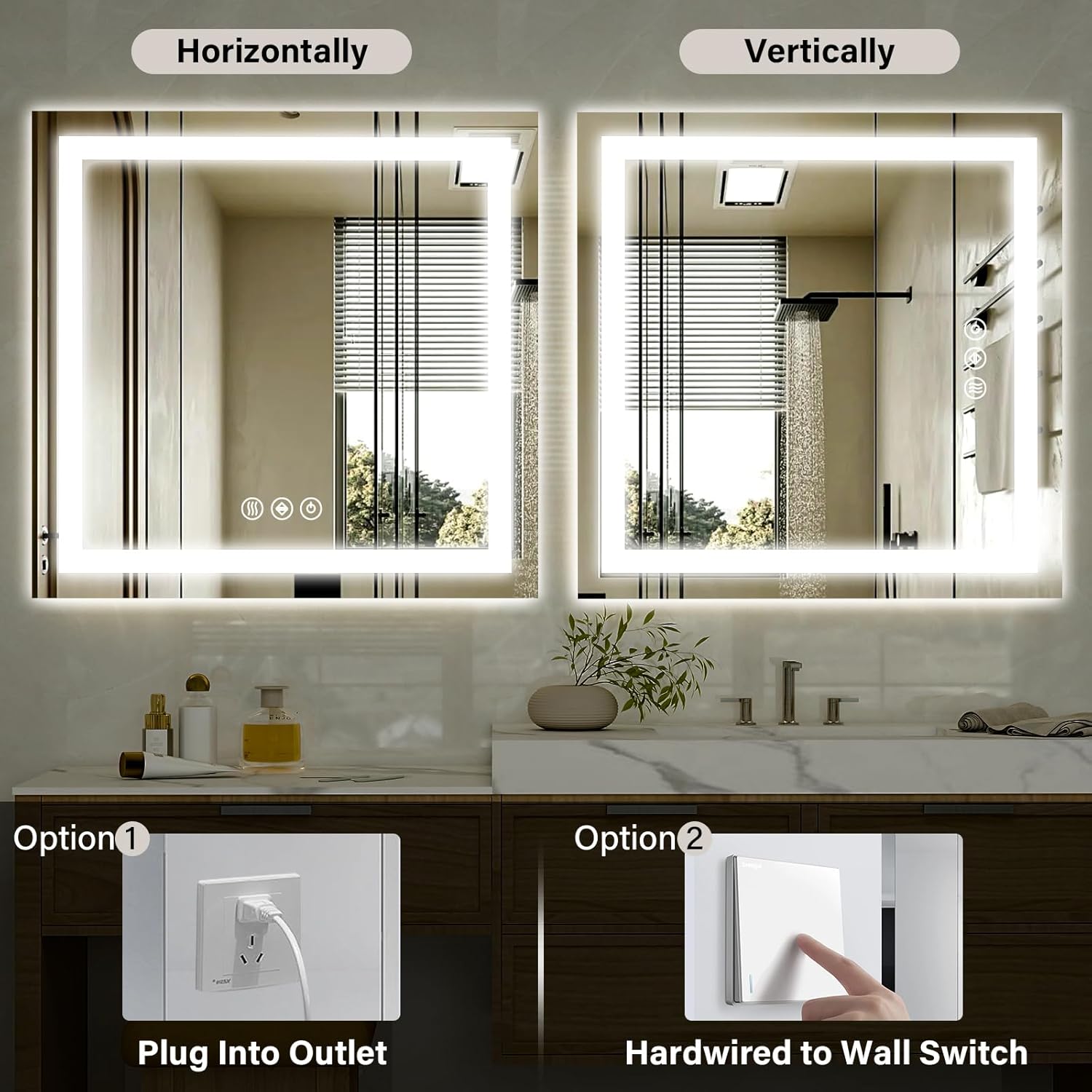 - Memory Function & Adjustable Mounting : The smart memory function saves your preferred light settings, while the flexible horizontal or vertical mounting options allow you to install the mirror in any orientation to suit your space