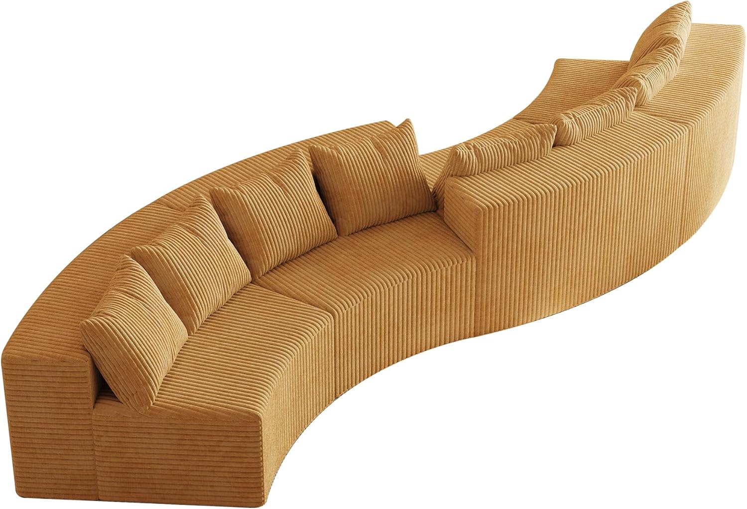 - ăLuxurious Corduroy Experienceă Indulge in the rich texture of our ultra-soft corduroy fabric, designed to feel like a gentle embrace. The durable yet velvety material resists wear while maintaining its sophisticated sheen, ensuring your Curved Sectional Sofa stays as inviting as the first day.