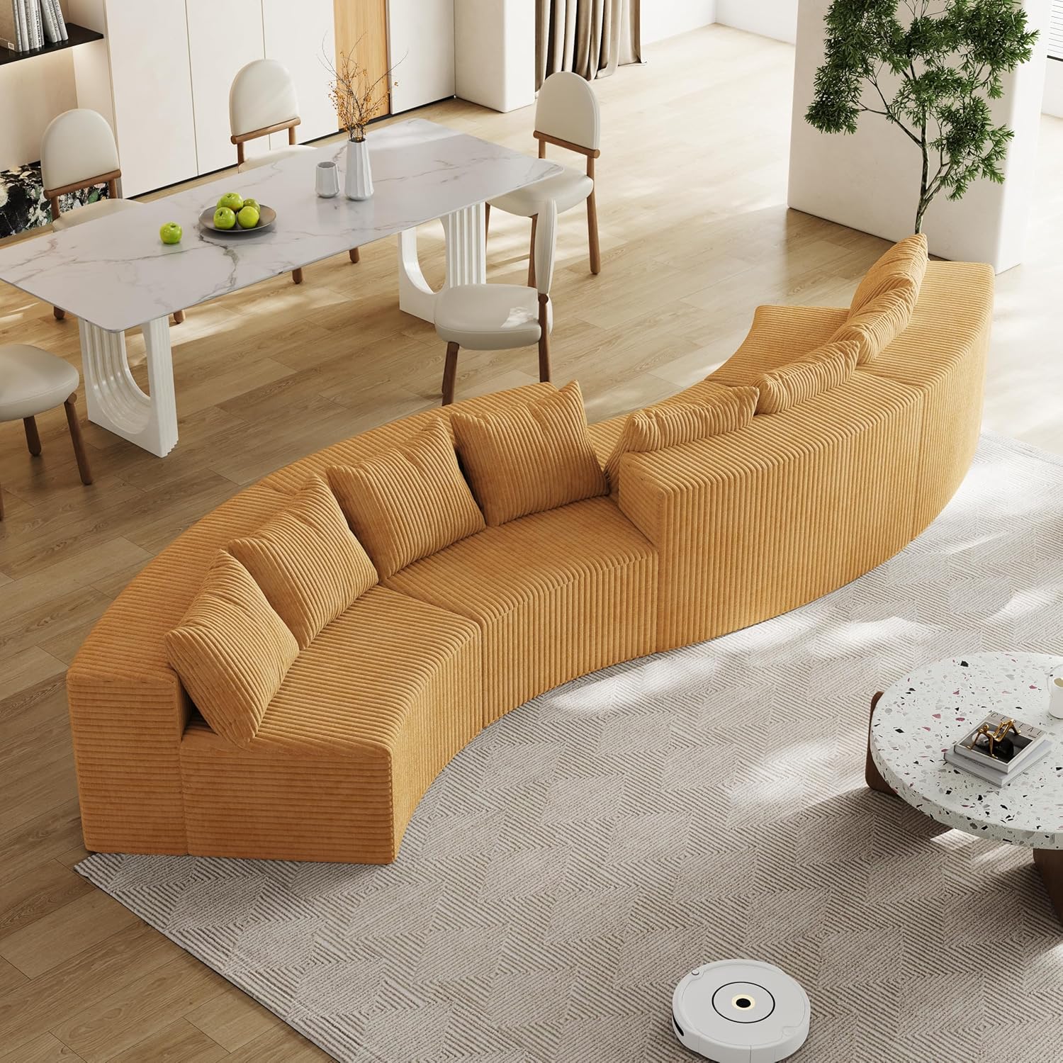 KEIKI Corduroy Curved Sectional Sofa, 4 Seater Symmetrical Modular Semi Circular Couch, Deep Seat Tufted Corner Sofa for Living Room, Lobby, Yellow