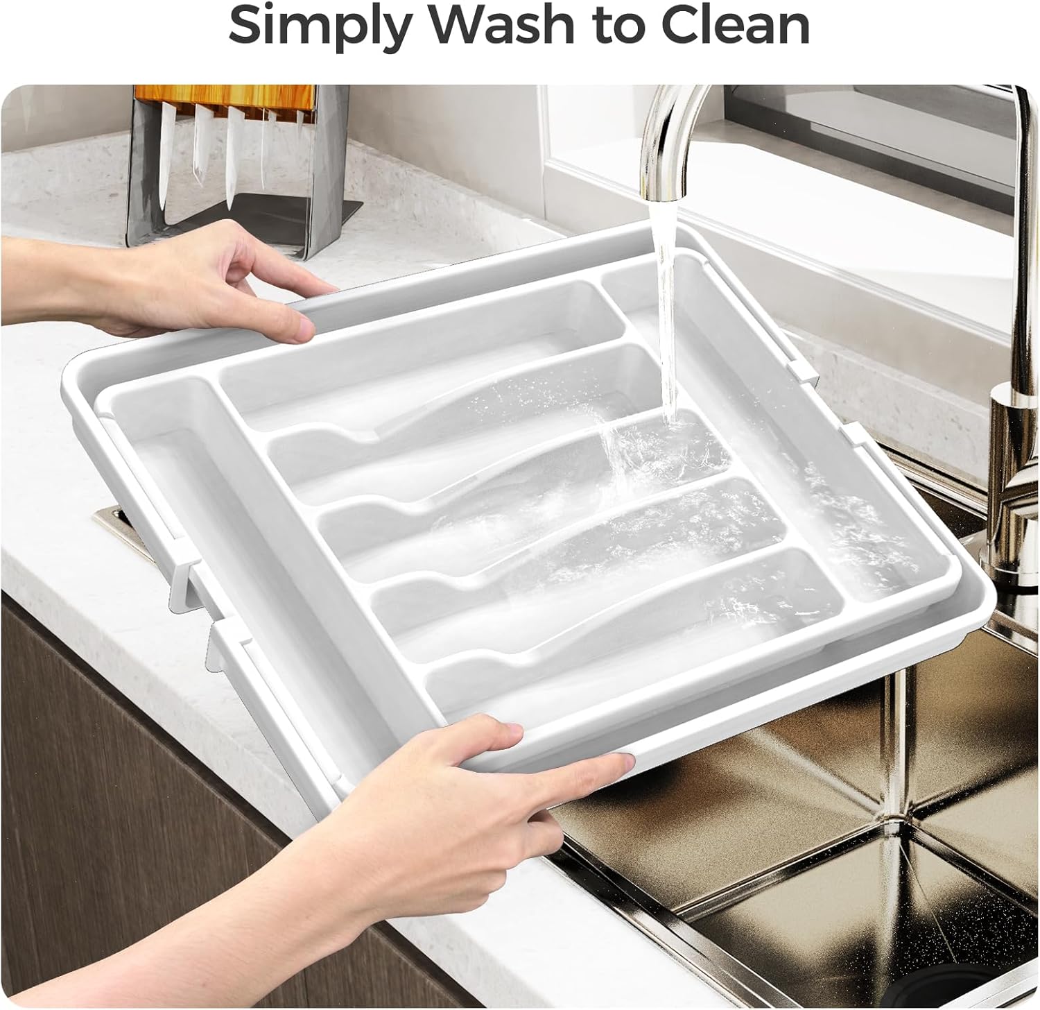 - 【Adjustable Size】:The width of the utensil drawer organizer expands from 12.4" to 21", perfectly fitting most standard drawers. (Measure your drawer before buying for the best fit).