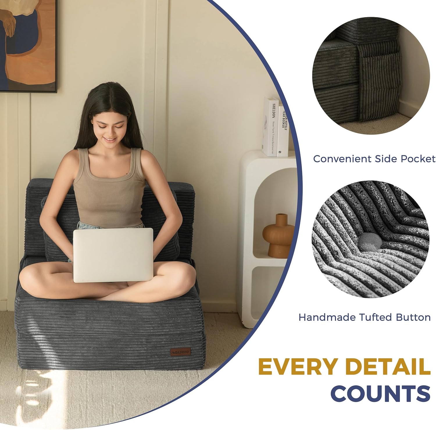 MAXYOYO Convertible Sofa Bed, Fold Out Single Sleeper Sofa with Pillow, 4 in 1 Tufted Folding Couch Bed Foam Floor Couch, Lazy Chair for Living Room Bedroom Guest Room, Dark Grey