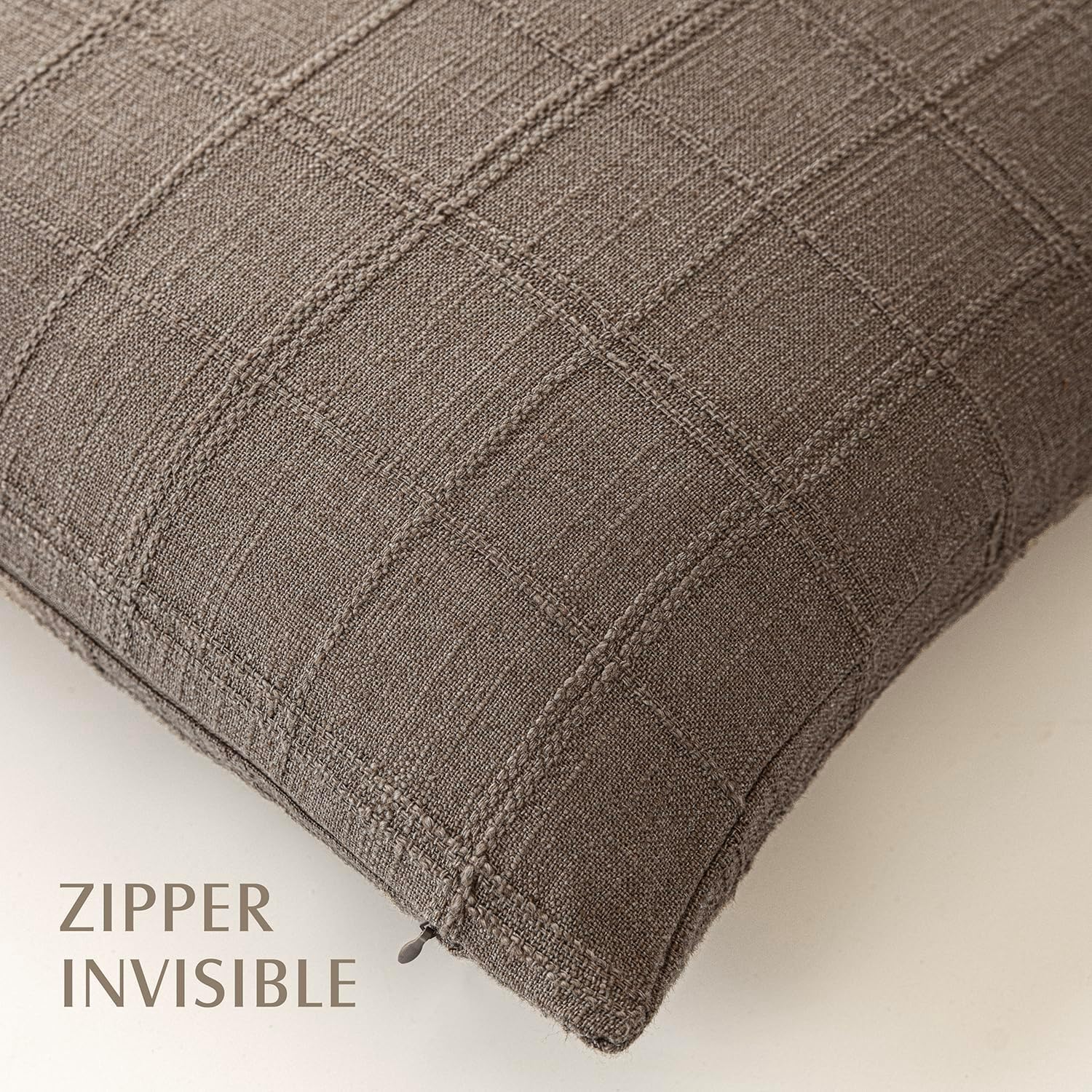 Foindtower Set of 2 Decorative Linen Check Throw Pillow Covers Neutral Farmhouse Vintage Cushion Covers Modern Boho Home Decor for Sofa Chair Couch Bedroom Living Room Outdoor,24×24 Inch,Taupe Grey
