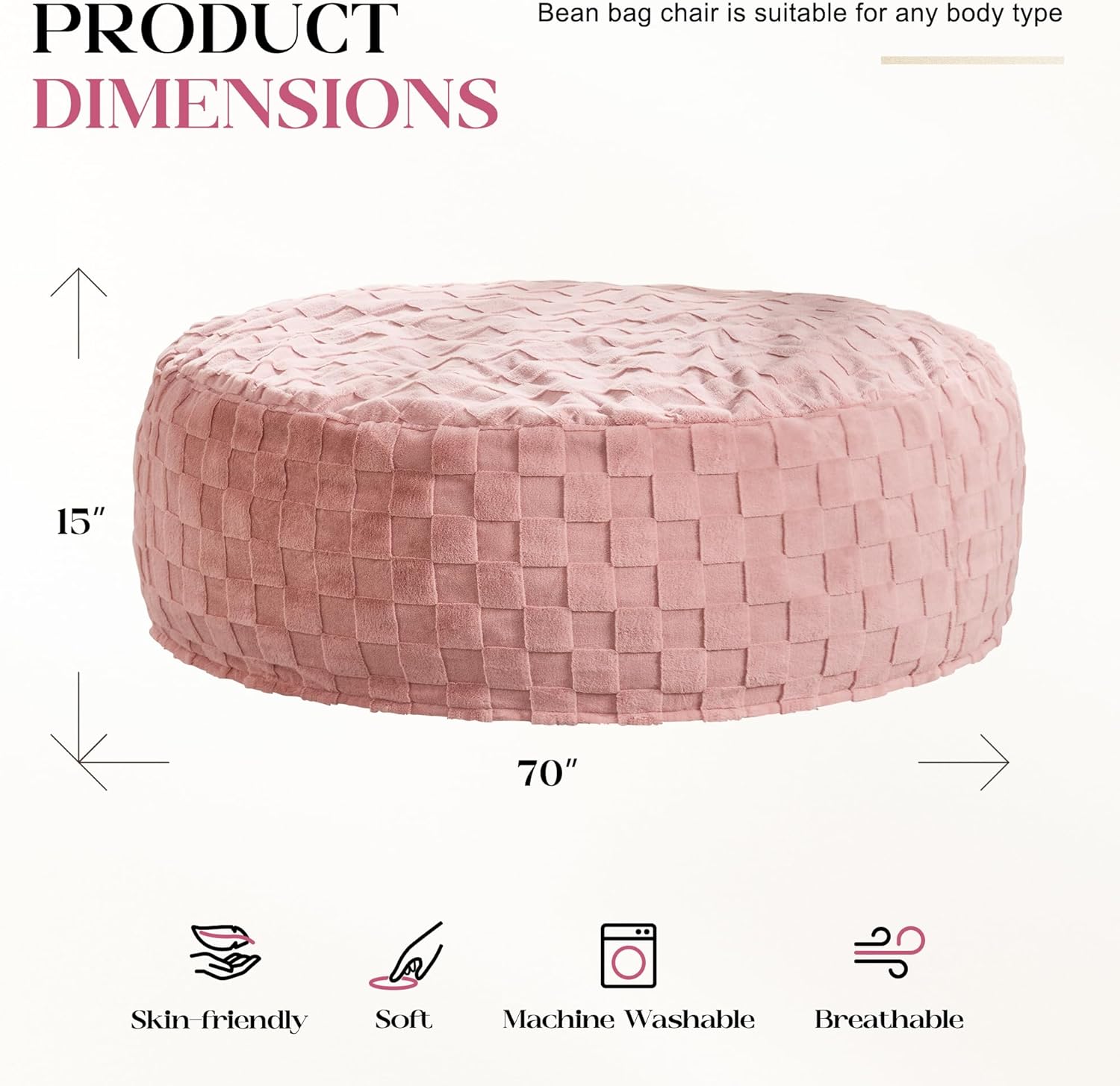 Hobestluk Bean Bag Chairs Beanbag Chair with Filler Adult Bean Bags with Fluffy Cover, Giant Bean Bag Chairs for Adults for Living Room, Bedroom (Pink, 6FT - 70" x 70" x 15")