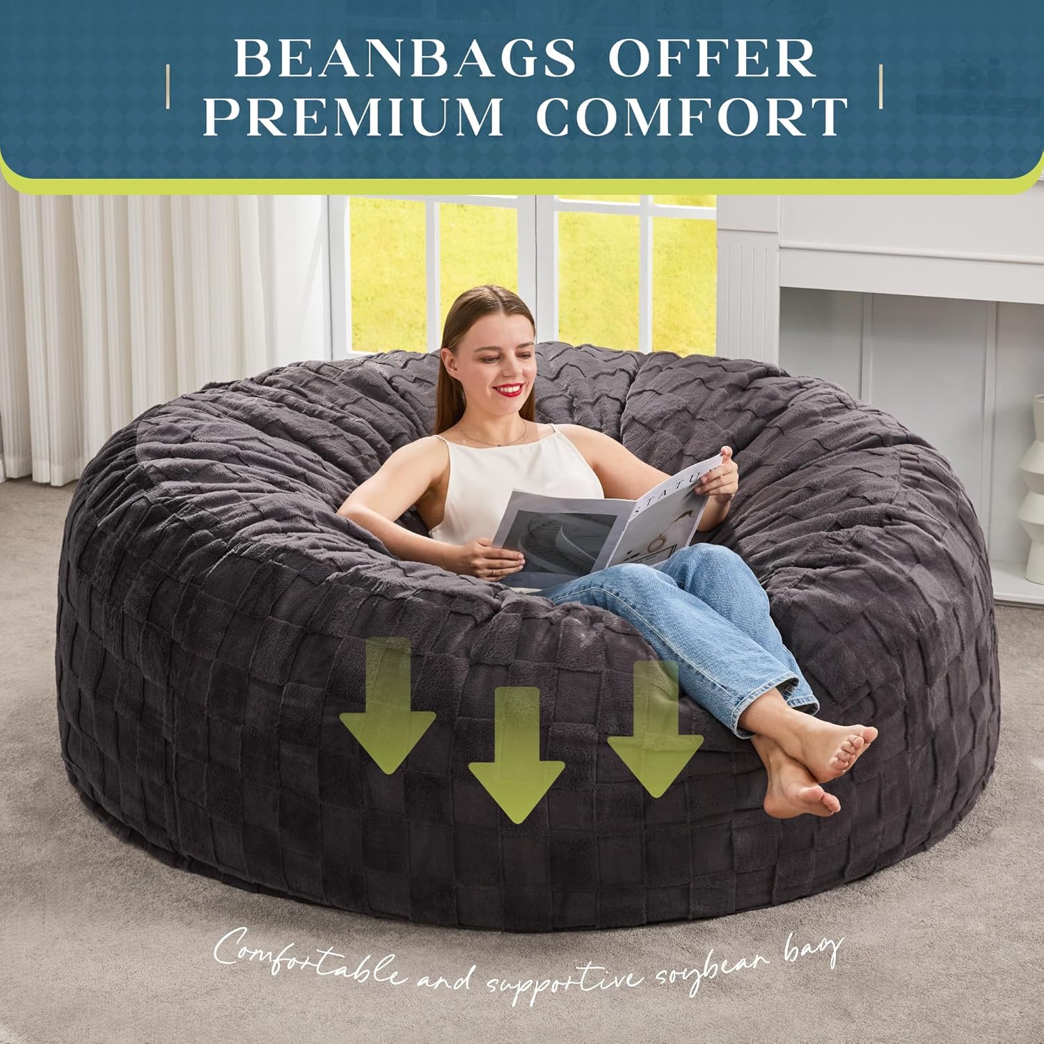 Hobestluk Bean Bag Chairs Beanbag Chair with Filler Adult Bean Bags with Fluffy Cover, Giant Bean Bag Chairs for Adults for Living Room, Bedroom (Dark Grey, 5FT - 50” x 50” x 24”)