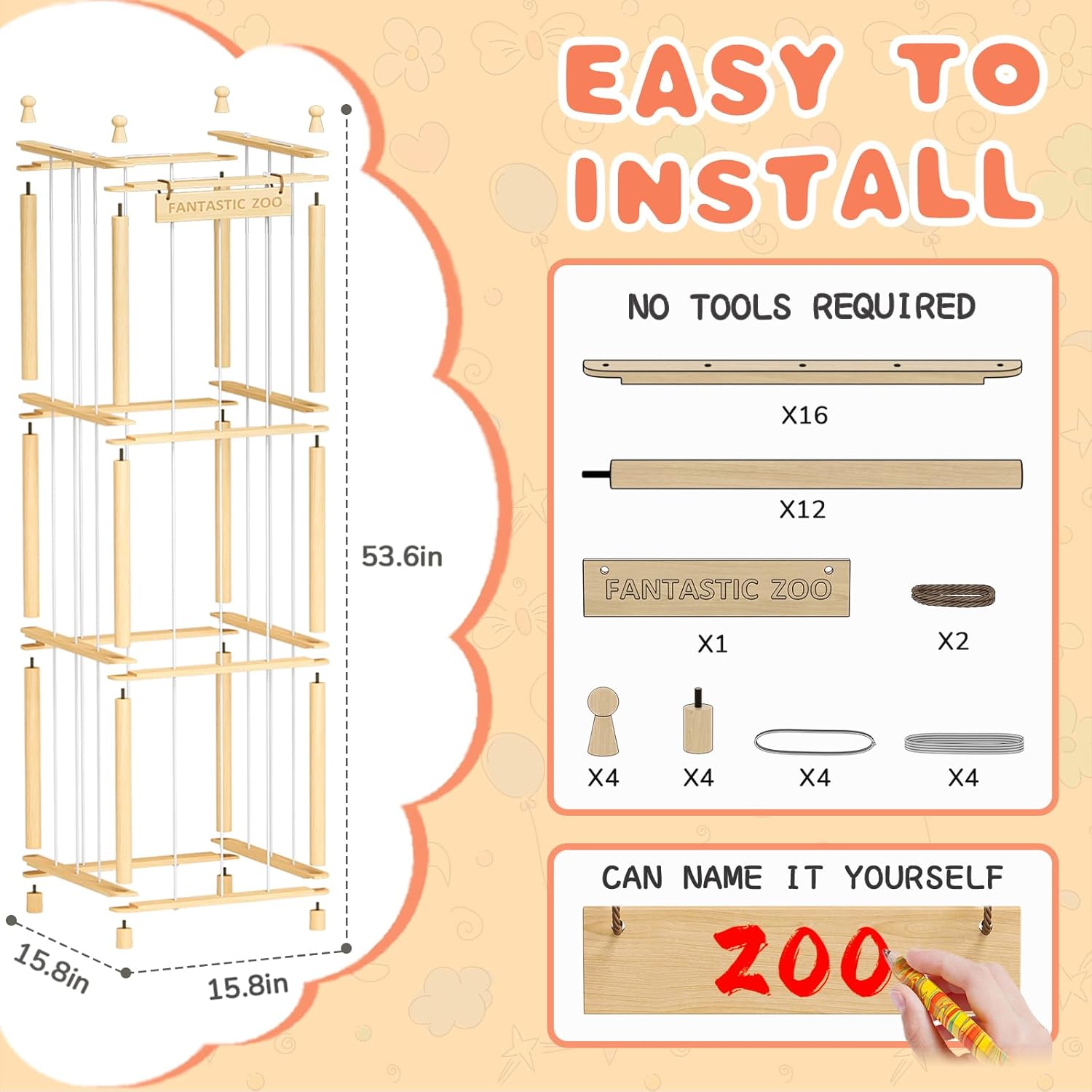 - 【Safe & Sturdy】Fantasy Zoo consist of a solid wood parts structure with a high loading capacity, and chamfer all contact surfaces to turn sharp edges into rounded corners. All screws are hidden inside the wooden rod to ensure that there is no exposed metal after assembly