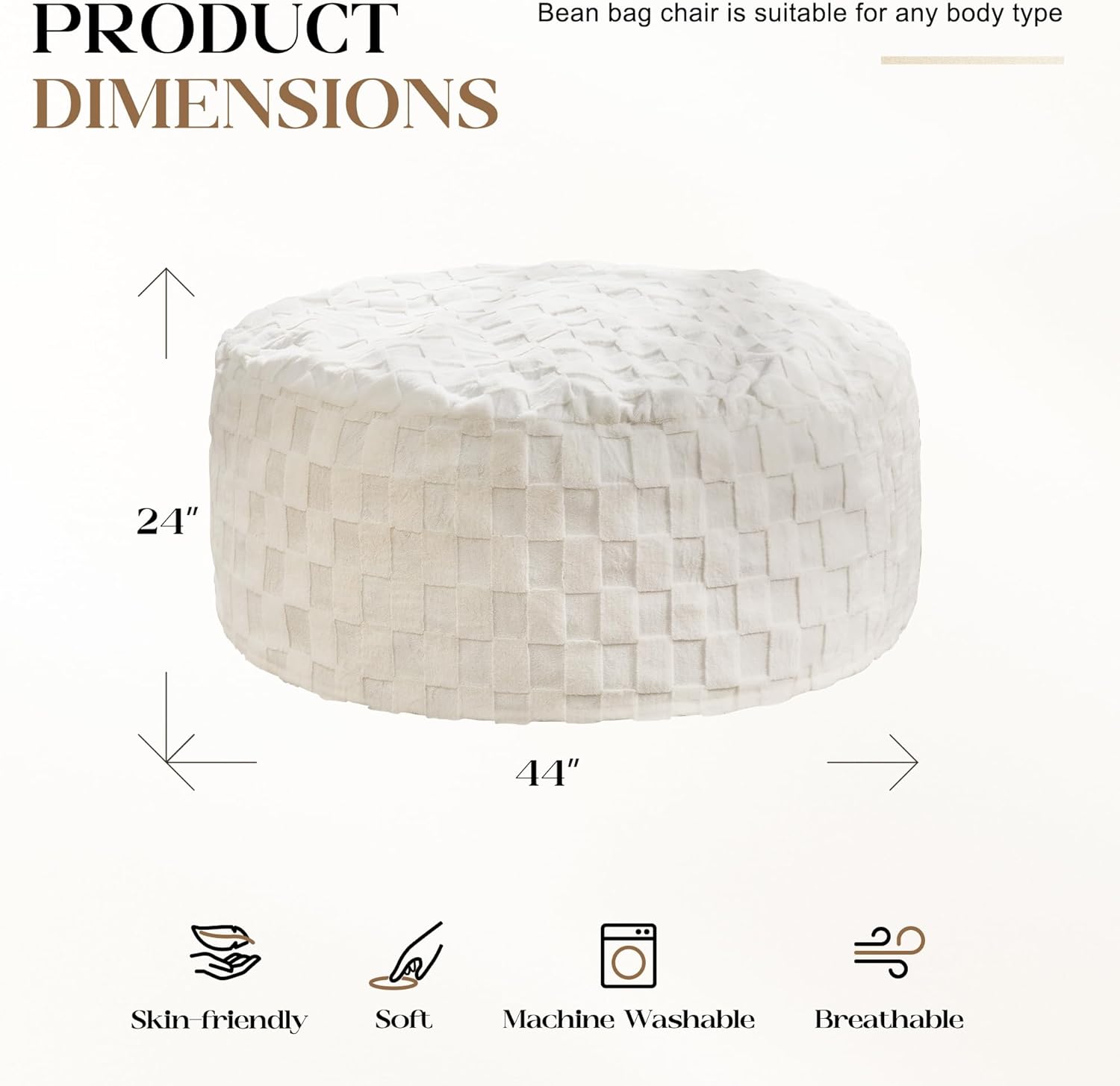 Hobestluk Bean Bag Chairs Beanbag Chair with Filler Adult Bean Bags with Fluffy Cover, Giant Bean Bag Chairs for Adults for Living Room, Bedroom (White, 4FT - 44” x 44” x 24”)