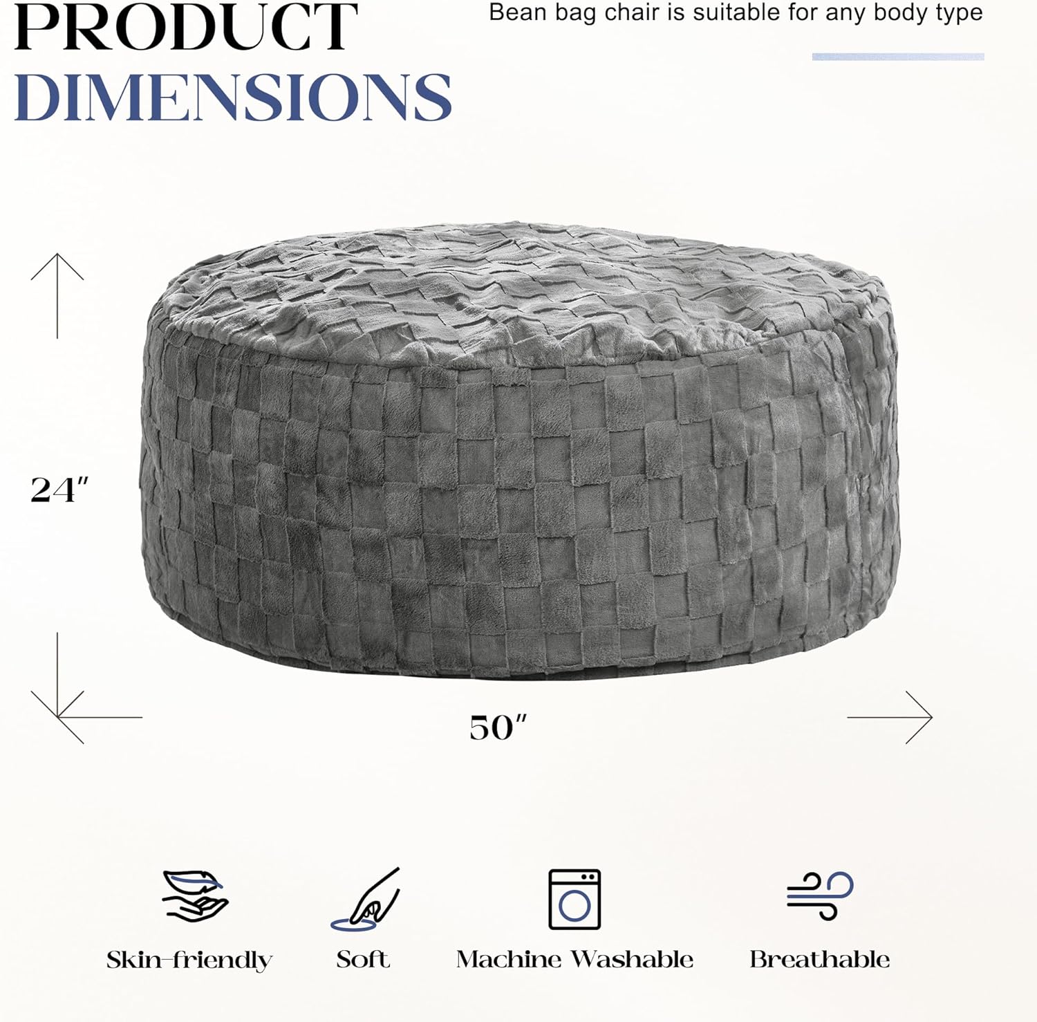 - 2-in-1 Usage: This large bean bag chairs offers two ways to use. Flip it over for added support, adapting to different scenarios for enhanced comfort and functionality.