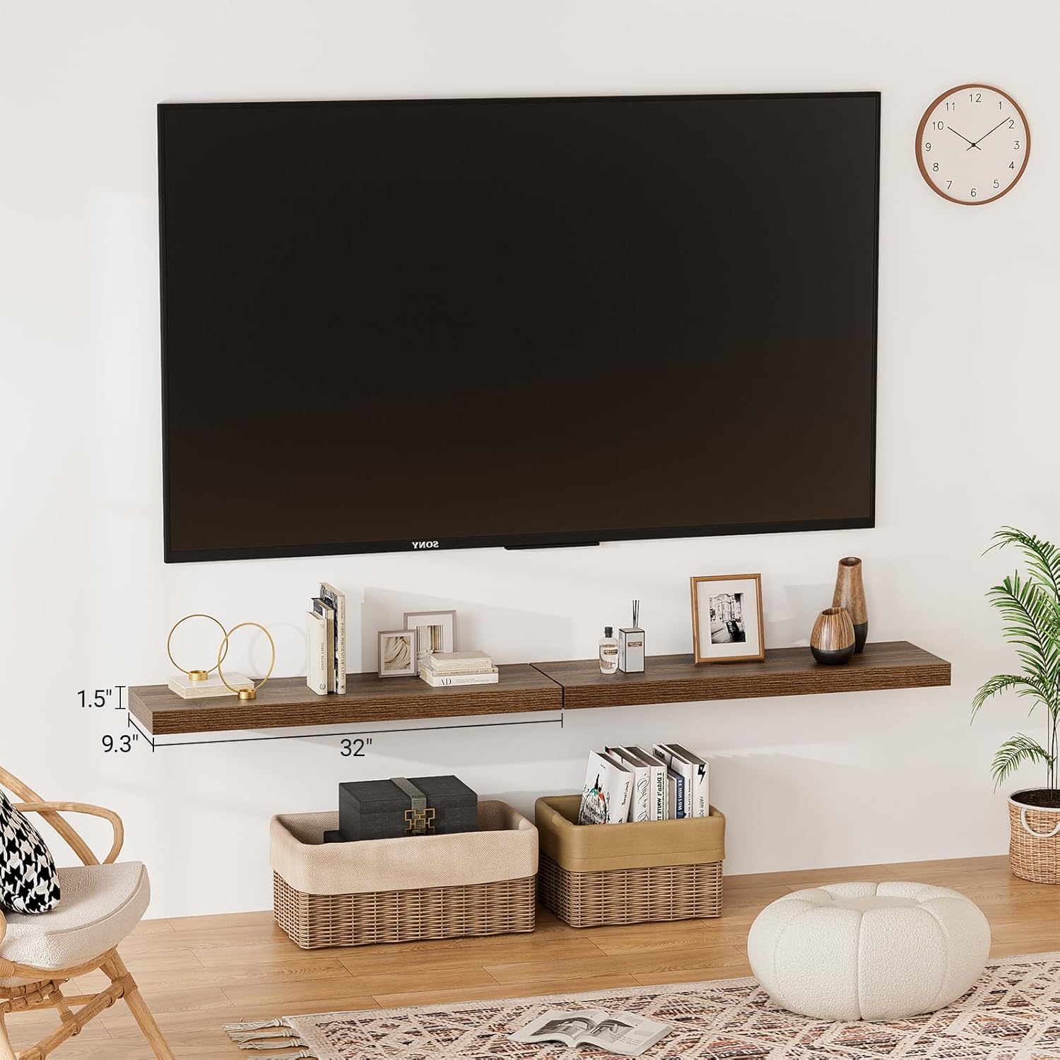 - ăLonger DesignăOur pretty 32 inch wall shelves are 32"W x 9.3"D x 1.5"H.Our 32 floating shelves is longer than traditional designs and can hold more items.The walnut floating shelves optimize wall space,helping organize essentials without taking up floor space in your home.
