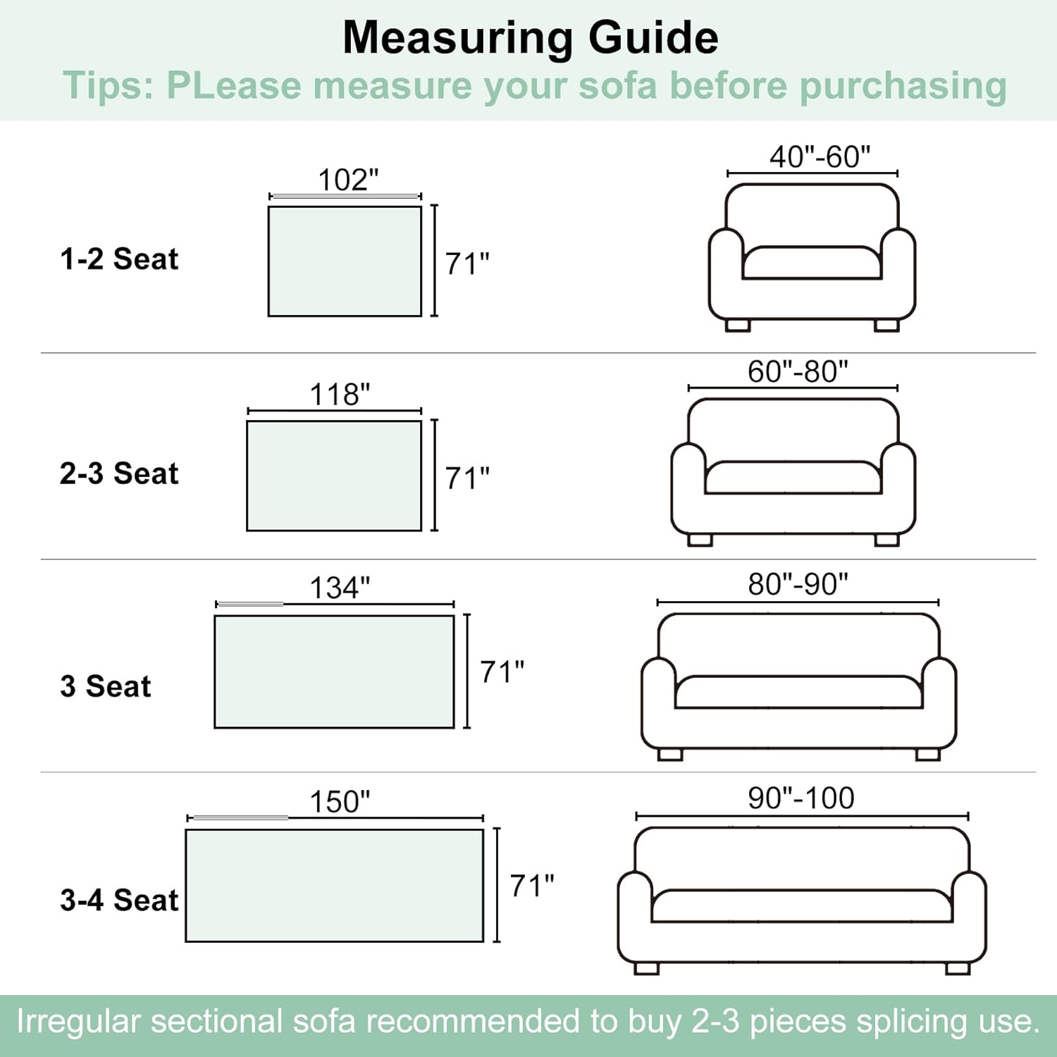 - Sofa Slipcovers Size Selection: Please measure your furniture before you buy.Size 71"x 102" is suitable for single or small loveseat, size 71"x 118" is suitable for loveseat or small 3 seat sofa, couch cover size 71"x 134" is suitable for 3 seat or small 4 seat sofa, size 71"x 150" is suitable for couch covers for oversized sofa. You could also choose any 2-3 size of sofa cover for your L shaped U shaped sectional chenille couch cover.