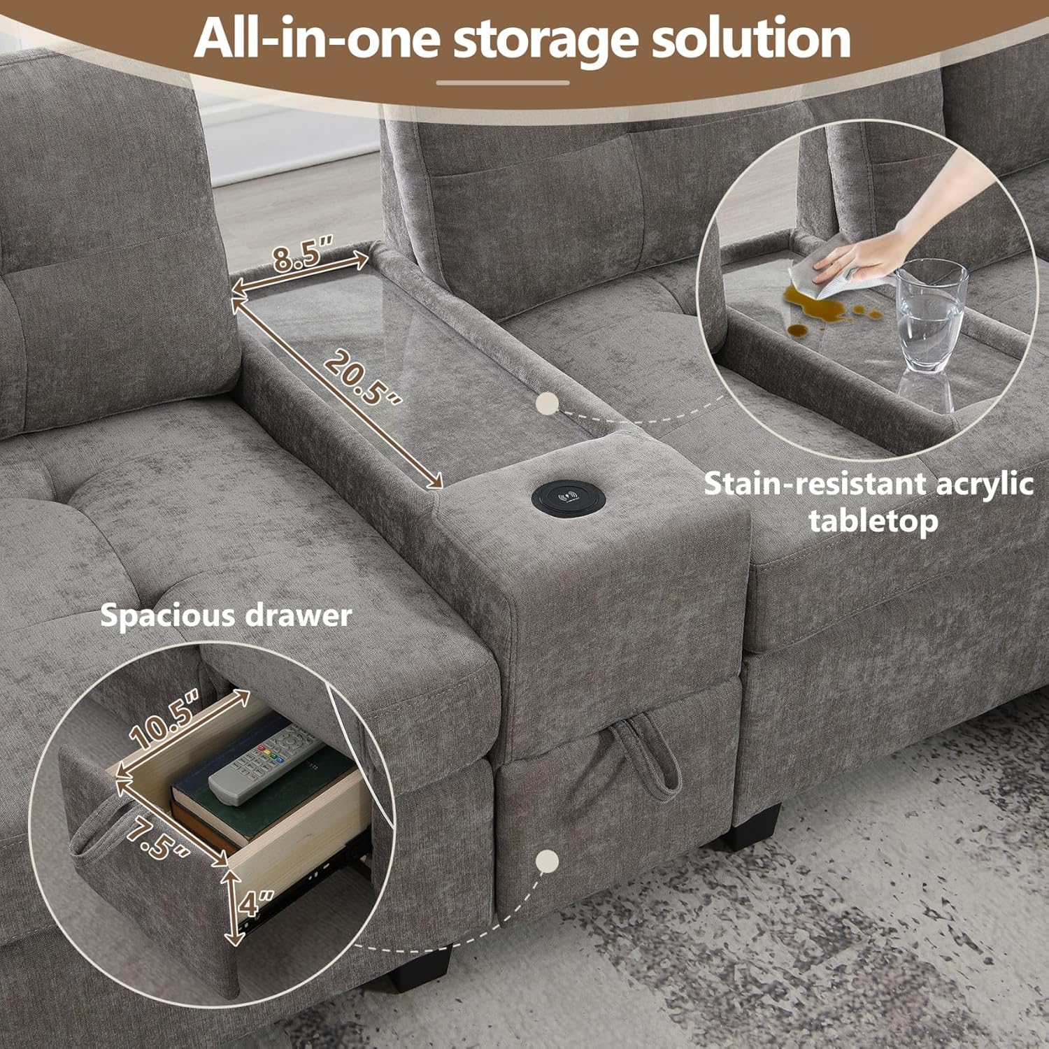 - ăExtra-Large Storage Compartments (10.5*7.5 inches)ă Equipped with two oversized storage compartments, each measuring 10.5 x 7.5 inches, this Modular Couches offers ample space for stashing away blankets, pillows, or other living room essentials. The hidden storage helps keep your space neat and organized, while also providing easy access to your items when needed.