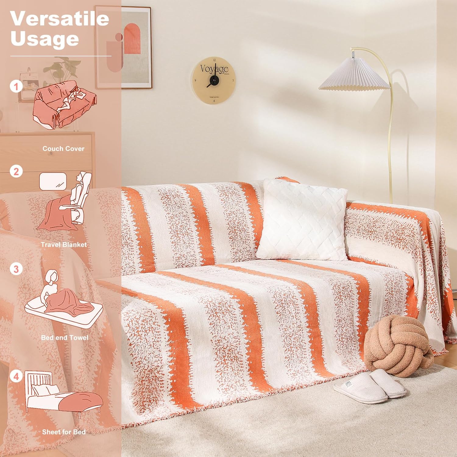 Boho Couch Cover, Sofa Cover, Sofa Covers for 2 Cushion Couch, Washable Sectional Couch Covers for Dogs Pet Furniture Protector Couch Cover Blanket for Living Room (1# Orange, 71" x 118")