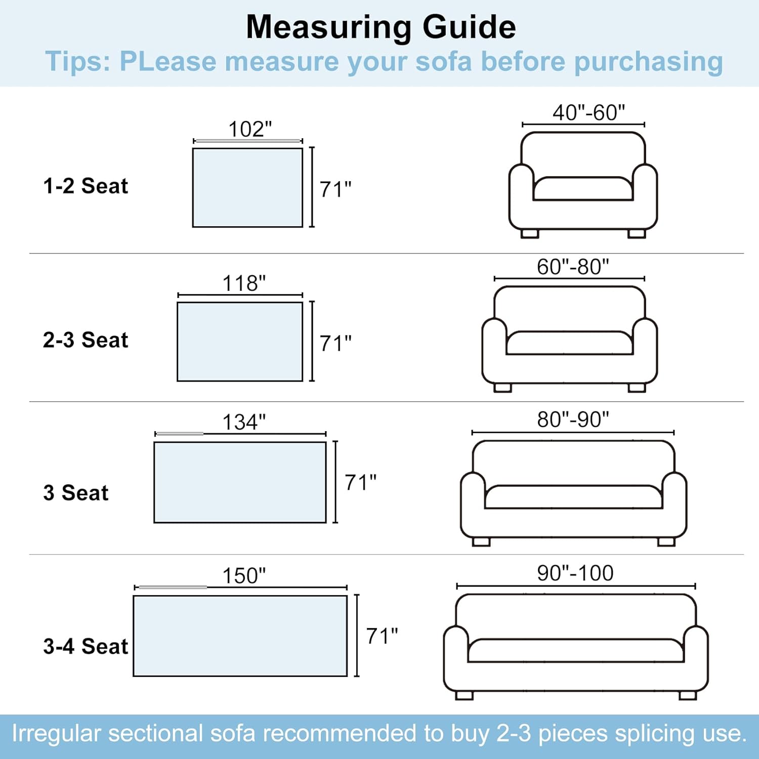 - Sofa Slipcovers Size Selection: Please measure your furniture before you buy.Size 71"x 102" is suitable for single or small loveseat, size 71"x 118" is suitable for loveseat or small 3 seat sofa, couch cover size 71"x 134" is suitable for 3 seat or small 4 seat sofa, size 71"x 150" is suitable for couch covers for oversized sofa. You could also choose any 2-3 size of sofa cover for your L shaped U shaped sectional chenille couch cover.