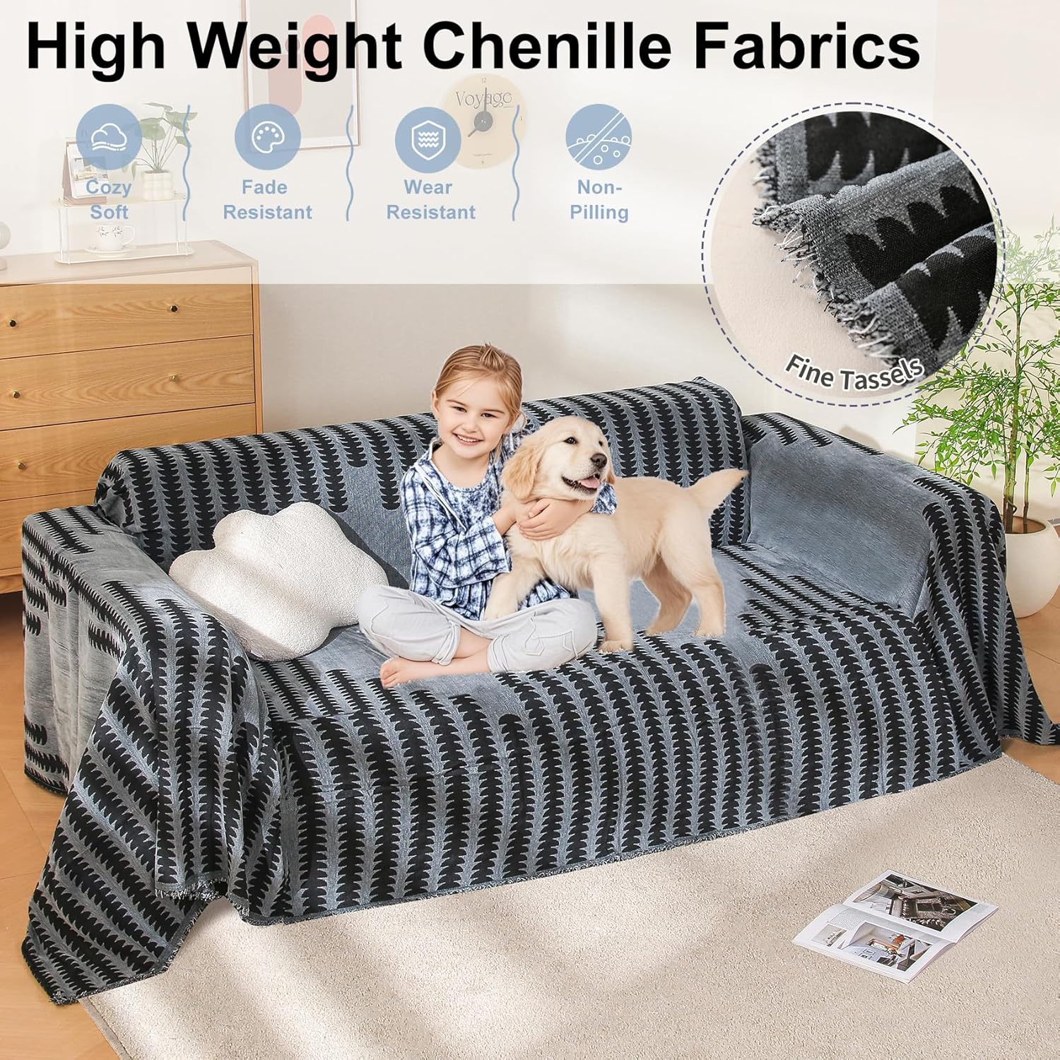 - High Quality Material: The boho sofa towel is made of high grammage chenille fabric, delicate and skin friendly, durable, scratch resistant, high colour fastness, non balling, draping, convenient for daily storage, reducing the time of housework, applicable all year round. Create a warm and healing atmosphere in your home.