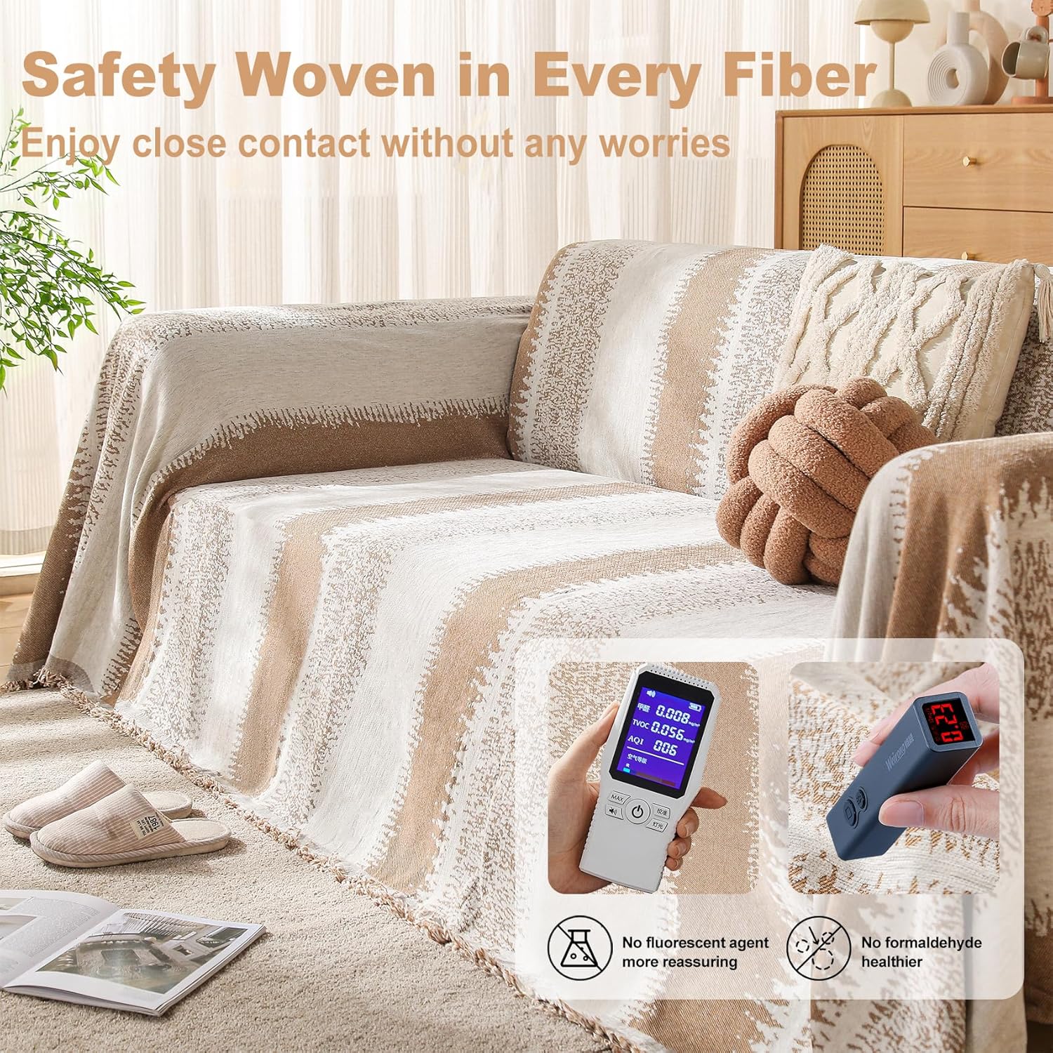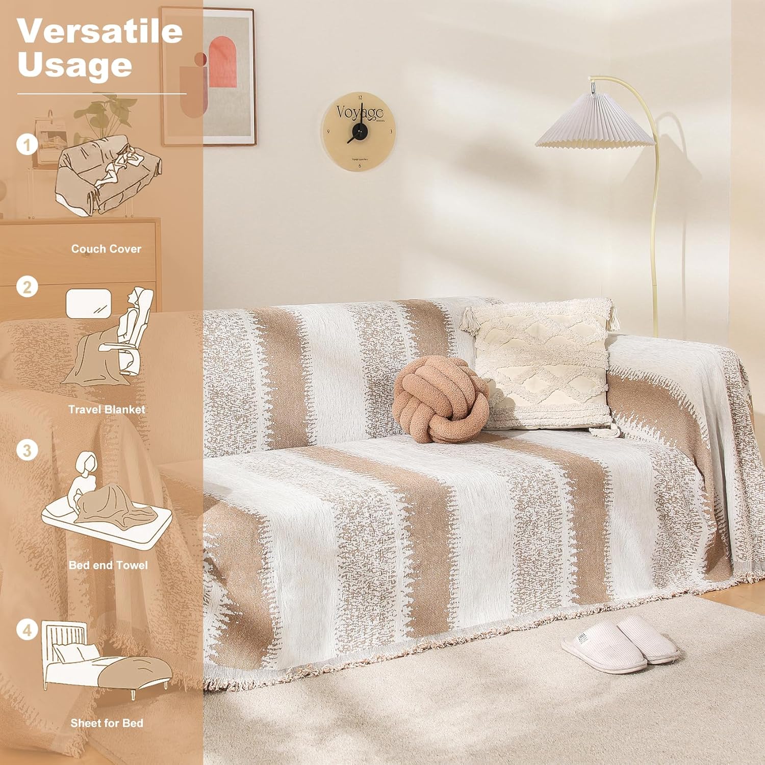 - High Quality Material: The boho sofa towel is made of high grammage chenille fabric, delicate and skin friendly, durable, scratch resistant, high colour fastness, non balling, draping, convenient for daily storage, reducing the time of housework, applicable all year round. Create a warm and healing atmosphere in your home.