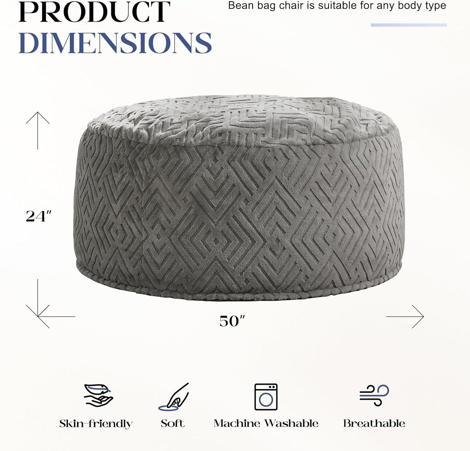 Hobestluk Bean Bag Chairs Adults Beanbag Chair with Filler Large Bean Bags with Fluffy Embossed Cover, Giant Bean Bag Chairs for Adults (Grey, 5FT - 50” x 50” x 24”)