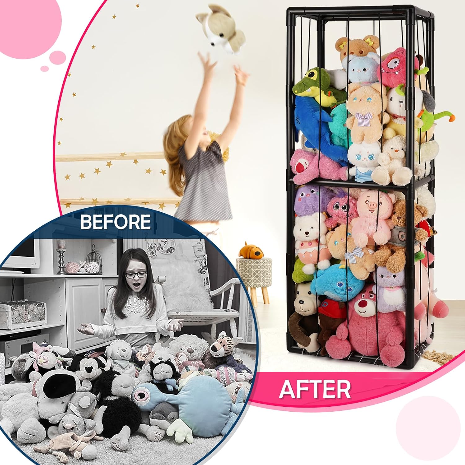 - ăSturdy ConstructionăIt is made with a sturdy, PVC and has a white base. The stuffed animal storage is designed with style and functionality in mind, perfect for playhouses, nursery room, kindergartens, corners, room organization.